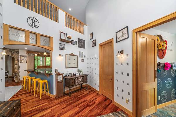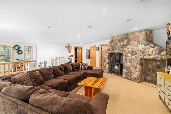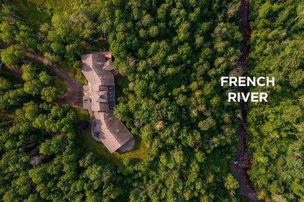 This is truly a one of a kind home that has a private Mother-in-Law suite attached. This home will offer 5+ bedrooms, 5 bathrooms, 5 stall garage, Geothermal, spacious living areas and high quality products throughout. The main house will feature 3+ bedrooms and 3 bathrooms. The main floor will greet you with a spacious foyer, a custom stone surround office, a powder room, a kitchen that features an exhaust hood, hickory cabinets, Cambria Countertops and a spacious pantry. The kitchen offers a breakfast bar that is adjacent to the informal living room and the wood burning fireplace. Off the back of this area is the private dining room that offers seclusion and peaceful noise of the French River flowing. Upstairs of this dwelling will amaze you with the movie theater room, 2 of the bedrooms, a generous living room and the most spacious recreation room with a full bar for ease of entertaining and impressing guests. Off of the recreational room is great area to store all of your seasonal decor, but most importantly this will allow access to the elevator. The elevator will lead you up to the third floor, known as the "Eagles Nest", with a great panoramic view the 29 acres this gorgeous home resides on. The Mother-in-Law suite can be accessed through 2 external doors or internally off the back hall that is located behind the attached garage. This hallway, like the rest of the dwelling is completed with diligent thought as this can be used as a mudroom, gardening/greenhouse, or just a hallway that can access the garage, elevator and the 2 dwellings. The mother-in-law suite offers 2 generous sized bedrooms, including another primary bedroom with an ensuite, a spacious living room and an additional recreational room and or music room. If this executive built home has not been impressive, this home is nestled on nearly 30 acres and about 1,350 feet of French River water front. Owners have been informed that this home can be open enrolled into ISD 709 with bus pickup and dropoff.
