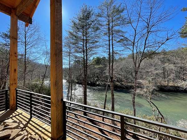 Carefully designed to bring you a luxurious river living experience, this newly constructed retreat is beyond captivating. You'll be greeted by the sounds and scenes of the glistening Toccoa River and quickly notice that this rustic yet elegant retreat was built with just that in mind. Both indoors and out you'll appreciate the balance of mixed materials that create a warm and relaxing environment. Outdoors you'll find two levels of covered decking that overlook the water complete with a stone fireplace on each level, along with access to the water's edge, and landscaping that has been thoughtfully planned to elevate first impressions. Indoors the modern finishes and rustic elements work together to bring you a cozy and stylish living space. The main level offers an open great room with soaring ceilings and a stone fireplace and leads right to the main level covered deck, the kitchen and dining area are just off the great room with fantastic prep and storage space, the primary suite which also features the washer and dryer, and additional ensuite. On the terrace level you'll find a secondary living room complete with wet bar and fireplace, as well as two additional bedrooms and bathrooms + flex/office space and access to the lower-level porch and to the water. This modern rustic showstopper is the ultimate space to entertain and sleep guests, yet when they're all gone it still offers an intimate feel. Other highlights include granite countertops, stainless appliances, tile showers, custom cabinetry, and more. You'll enjoy the best of both worlds - submerging yourself in the great outdoors and what the mountain and river life have to offer while also enjoying easy and quick access to amenities galore - it's just minutes to downtown Blue Ridge and McCaysville, Old Toccoa Farm Golf Club, Lake Blue Ridge, and more. This dreamy haven is one you don't want to let pass you by. It's all in the details at River Chase Way...