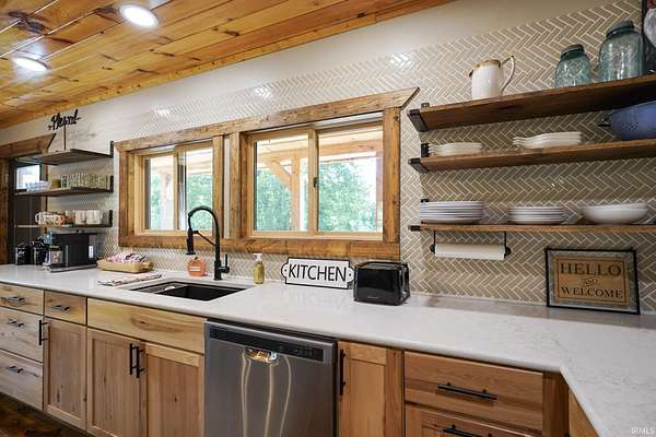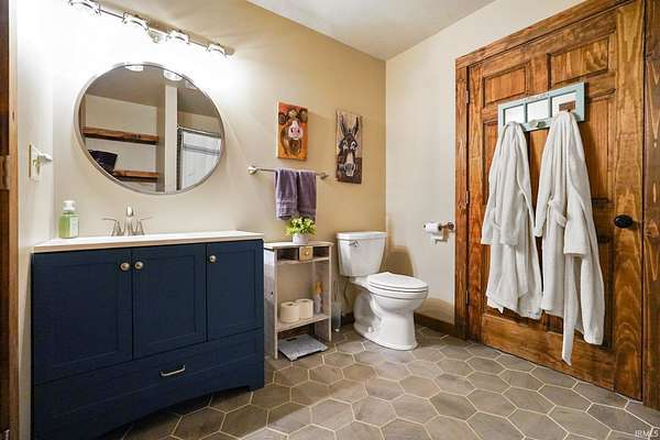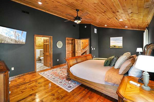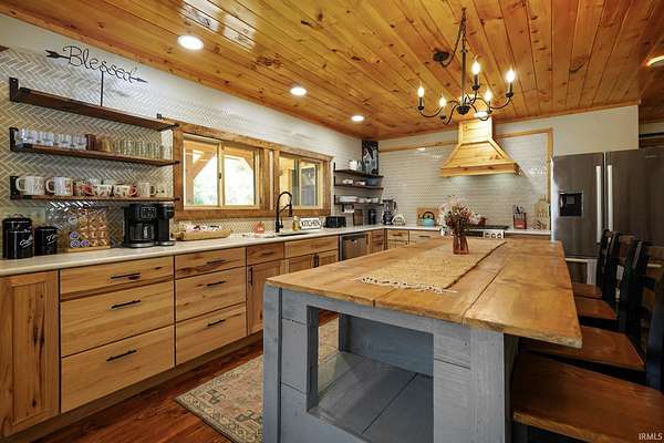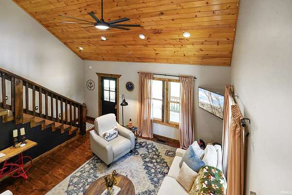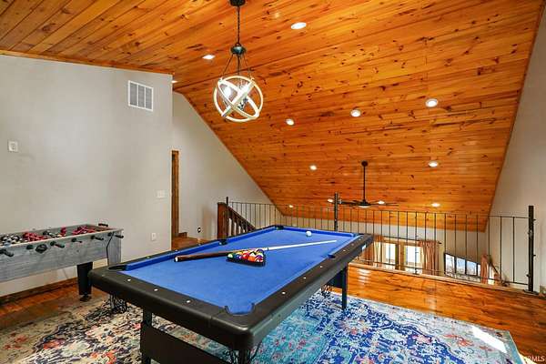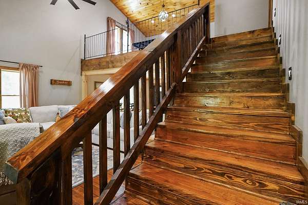 Whether you're dreaming of a peaceful getaway or looking for a smart investment, Lily of the Valley Tourist Home is a place where comfort and character come together. Wake up to the quiet sounds of the forest and sip your morning coffee on the porch as the sun peeks over Brown County's rolling hills. The heart of the home is its beautiful kitchen, thoughtfully designed with warm finishes and plenty of space to cook up meals to enjoy with family and friends. Throughout the home, you'll find rustic touches of rough-sawn lumber, cut right from the surrounding Brown County woods, adding a sense of history and local charm. A highlight of the space is the custom iron railing on the overlook balcony, handcrafted by a well-known local artist, giving the home a personal, artistic touch. The cozy game room invites hours of fun, and after a day exploring Nashville's shops or hiking the scenic trails at Brown County State Park, you can retreat to a welcoming bedroom suite with a soaking tub that's perfect for unwinding. With its warm atmosphere, handcrafted details, and perfect location, this property isn't just a house--it's a place where memories are made and new stories begin.