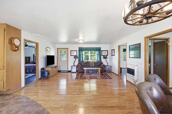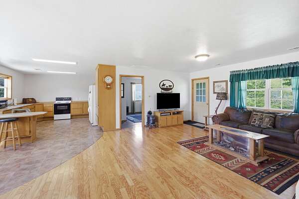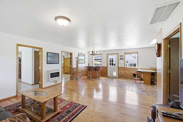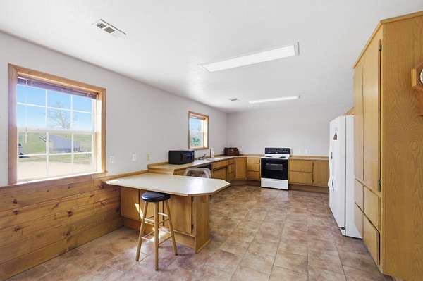 Charming 2-bedroom, 1-bath single-level home on approximately 2 acres! This well-kept property offers easy one-level living and includes an accessible full bath with walk-in shower. All appliances stay, including the washer and dryer, making this home move-in ready. Outside, you'll love the impressive shop with concrete floor, power, and 220 electric already set up for welders and hobby use. A great opportunity for anyone needing space, functionality, and country living all in one package.