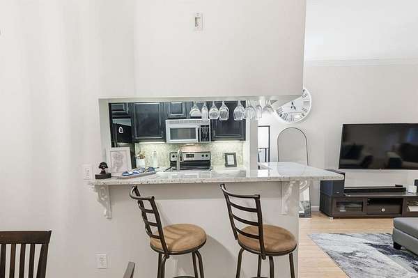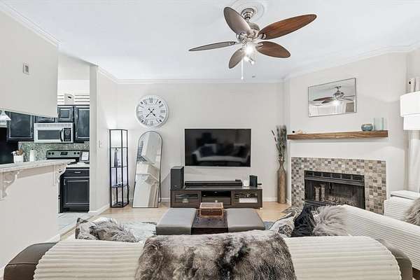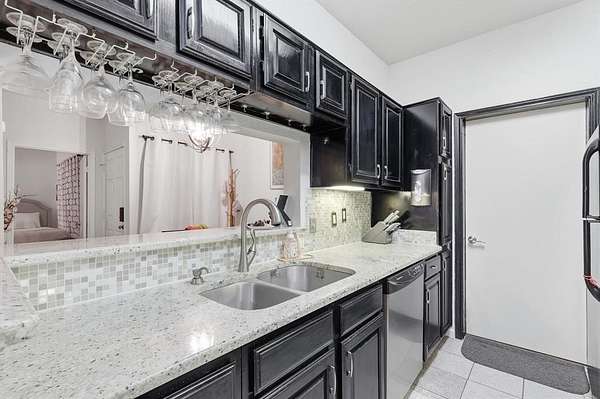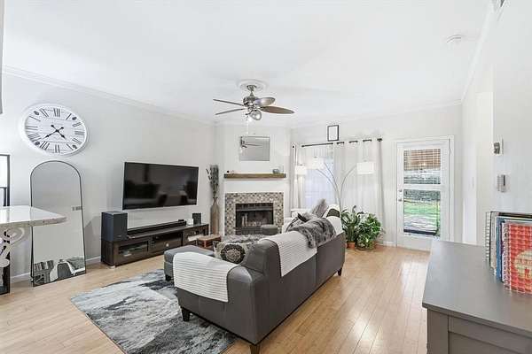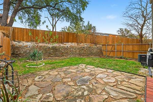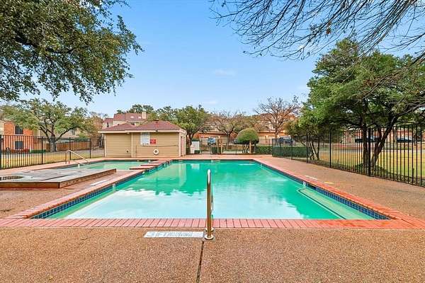 Location location location! It doesn't get better than this! Conveniently situated near the Dallas North Tollway, I-635, and the George Bush Turnpike, you'll have quick access to neighboring cities. Plus, you're just a short stroll from the shops and restaurants at Village on the Parkway, making this home the perfect combination of comfort and convenience. Secluded & coveted condo, first floor unit, you'll step into an open and spacious downstairs floorplan perfect for effortless entertaining. Gather around the cozy wood burning fireplace, enjoy the convenience of 2 full baths, and step out to the large private yard with a patio perfect for relaxing, hosting guests and having a pet with room to roam. This first floor condo has 2 bedrooms split for privacy, each with a full bath and walk-in closet. Spacious living room with fireplace plus cozy dining room and a serving bar open to the kitchen. The kitchen has granite counter tops, stainless steel appliances, serving bar to the dining area with wine glass holder and is open to the living area. The main bath has a luxurious large garden jetted tub for your relaxation. There are wood floors, a covered patio, and the garage provides direct access into the unit! The garage has a high ceiling and extra storage shelving all around and a garage door opener. The community pool and huge dog grun grassy area is located right across the front drive for quick and easy access. The nice large private fenced back yard is a rarity for a condo plus it has a covered patio for outdoor bbq's and relaxation. Recent updates are a new hot water heater, AC in 2023, main bath vanity, kitchen faucet and high ceilings with NO popcorn! This one is move-in ready! The HOA includes the water, sewer, & trash costs, building insurance & maintenance and full use of the pool facilities.