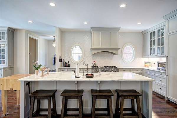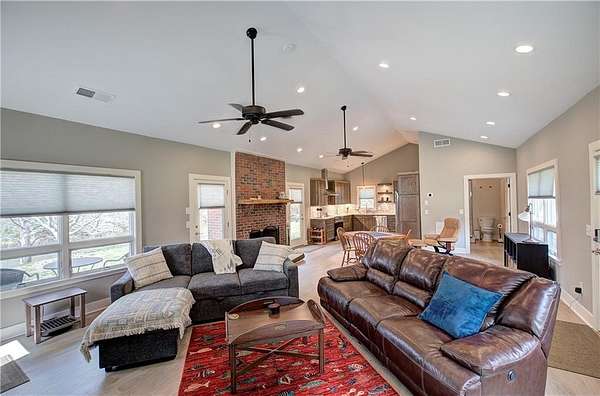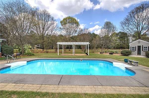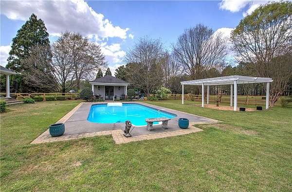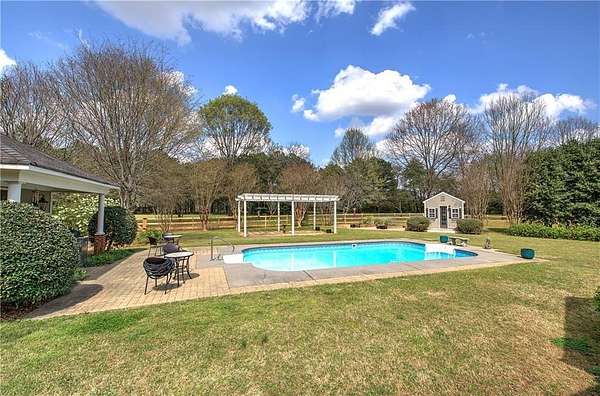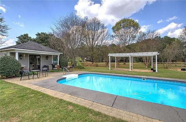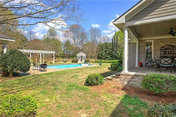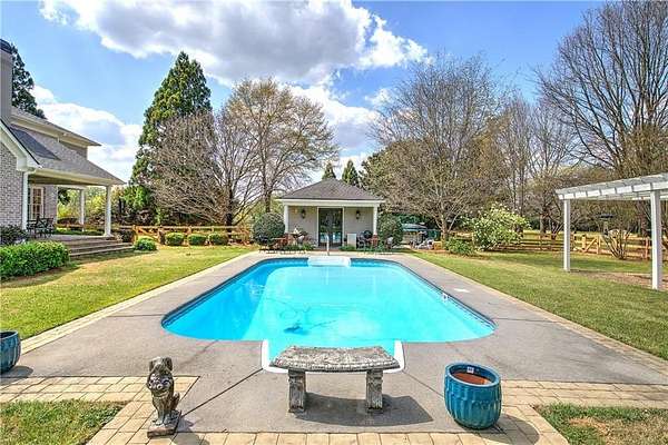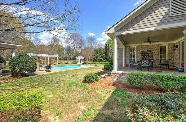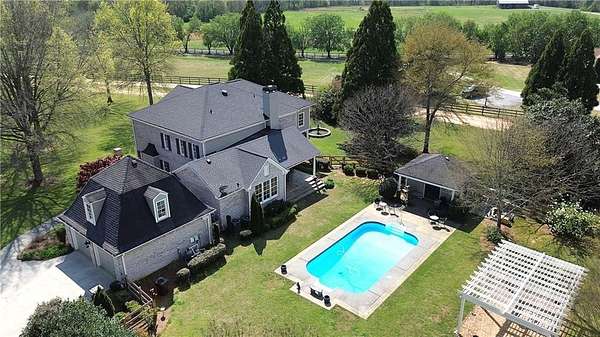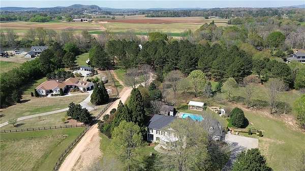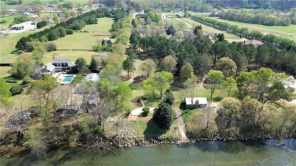 Nestled just off Old Alabama Rd in the City of Cartersville, this exceptional Southern Living 'Josiah Smith Custom Home' sits on 6+ acres. The waterfront estate along the Etowah River offers a rare combination of comfortable privacy and refined river front living all within a convenient access to I-75. The custom designed 3800+ square foot features 3 bedrooms and 2.5 baths with thoughtfully curated finishes throughout. The enclosed backyard is designed for both entertaining and relaxation, complete with a spacious covered back porch, salt water pool, pool house with half bath,storage/playhouse, pergola, and vegetable garden surrounded by mature trees and established landscaping. The room windows captures beautiful outdoor views, making this home a true birdwatchers' paradise. Inside the home, craftsmanship immediately stands out. The main level showcases 100+ year old heart pine flooring reclaimed from a historic nearby home. While a striking foyer chandelier salvaged from a courthouse in South Georgia adds distinctive architectural character. The living room/study features a spacious closet and opens onto the side porch and overlooks the fountain garden creating a peaceful retreat. The dining room offers generous space for entertaining, gas fireplace, with a convenient access to the kitchen. The foyer opens into an expansive open concept living and kitchen area designed for seamless indoor/outdoor living. The large family room with a gas fireplace blends effortlessly into the kitchen that opens onto the covered back porch overlooking the pool and backyard. The Chef 's kitchen features custom cabinetry, stone counter tops, Sub Zero appliances, and a spacious causal dining area with stunning views. A well appointed scullery (back kitchen) includes a wet bar, appliance storage, and additional cabinetry. A large rear entry connects to the 2 car garage with an unfinished room above-ideal for future expansion studio, or additional guest accommodations. Upstairs in the primary suite offers a spacious sleeping area and luxurious bath with dual vanities, walk-in shower, soaking tub, linen closet, and expansive custom closet. Adjacent to the suite is a private office,sitting area and conveniently located to the large laundry room. Two additional bedrooms share a large full bath, one to include built in book shelves and a desk, while the other offers abundant closet and storage space. A peaceful wooded path leads to a beautifully 2025 restored "River Cabin" retreat directly on the Etowah River. This charming cabin serves perfectly as a guest house, office, or private get away. Large windows provide serene river views,and the open floor plan includes a spacious living area with masonry fireplace, full kitchen, new appliances, full bath and laundry nook. A full length deck faces the river only 50 feet away,and graveled patio with the fire pit offering memorable views of the river. Completing the property is a private boat ramp allowing you to launch and retrieve your boats directly from your own land. This ONE OF A KIND Estate blends timeless materials,thoughtful designs,exceptional outdoor living and an extraordinary opportunity to live a River Front Dream.