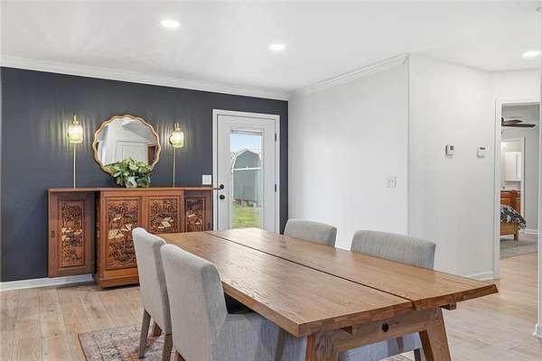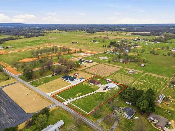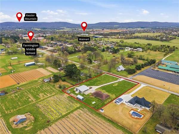 A one-of-a-kind property in the heart of Farmington — two homes, 5 bedrooms, and over 3,399 SF of living space on 2 acres. The brick main home (2,409 SF) offers a wide-open floor plan with granite kitchen, split bedrooms, home office, mudroom, and multiple flex rooms for offices or playrooms. Covered front porch perfect for entertaining. Garage with tornado shelter and EV charging station. Everything updated — new flooring, paint, lighting, and AC. Next door, a 40x50 red iron building houses a completely independent 990 SF home with its own HVAC and septic, plus 1,010 SF of workshop with drive-through roll-up doors. Whether it's a guest house, rental income, or multi-generational living, the possibilities are endless. The grounds include a 480 SF office shed with 100-amp power, greenhouse, 215 ft of raised beds, rose garden, thornless raspberries, and a ready-to-use chicken coop. White vinyl fencing, new concrete patio, and high-speed fiber internet to both homes.