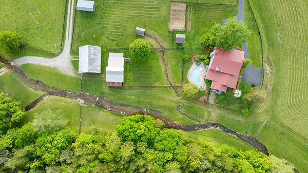 Quintessential Tennessee Farmstead! Discover classic Tennessee living on this picturesque 25-acre farmstead in the heart of Leipers Fork. Tucked beside a gentle, year-round creek, the charming brick farmhouse welcomes you with double-decker rocking chair porches--perfect for unwinding each evening with panoramic sunset views. Inviting you to explore and enjoy, the property features multiple barns, a historic stone spring house, and a sparkling swimming pool. The established garden is complemented by a vintage log garden shed, offering fertile soil for your own homegrown harvest and vibrant blooms throughout the seasons. Extensive, rolling pastures are expertly fenced for livestock, ensuring both privacy and room to roam for horses or cattle. Take in breathtaking vistas from the hilltop, offering a buildable site that overlooks the idyllic Leipers Creek Valley. This farmstead captures the essence of country life with tranquil water features, rich farmland, and all the comforts of a true Tennessee retreat.