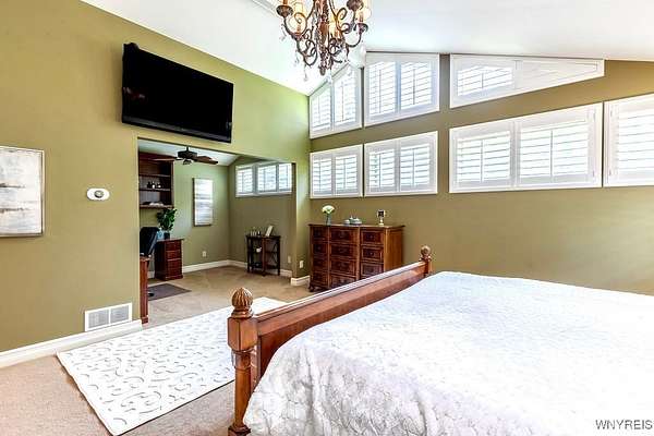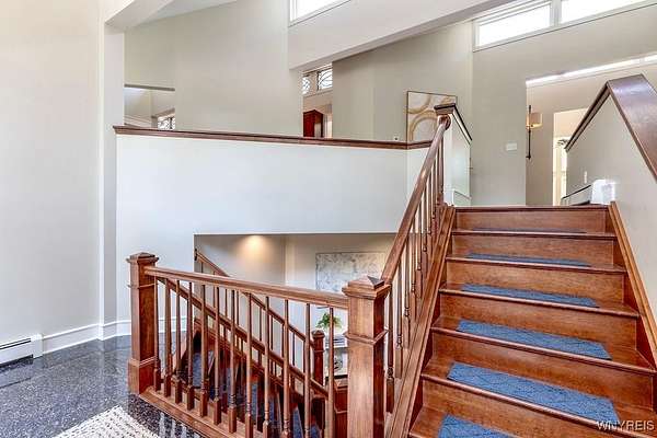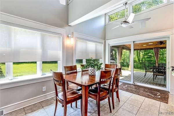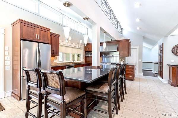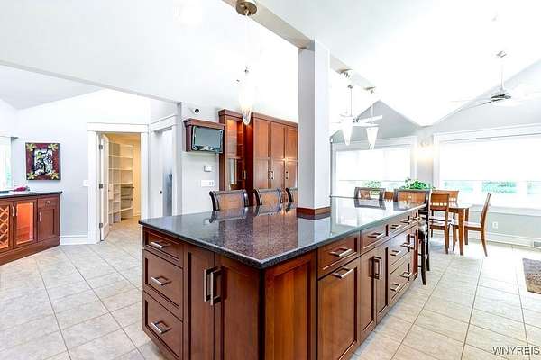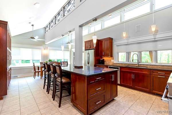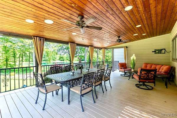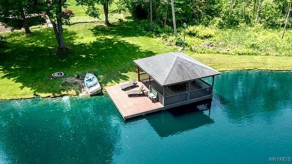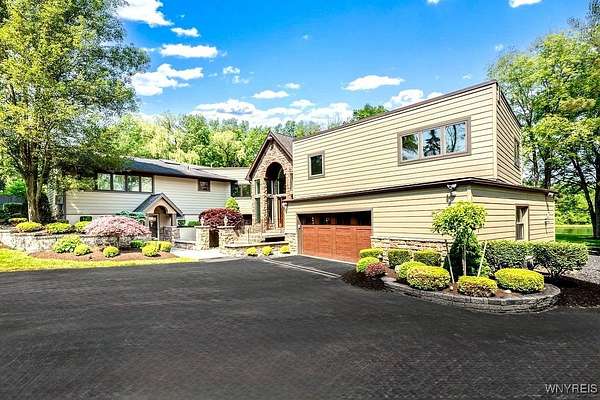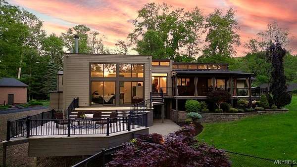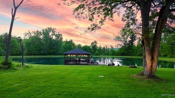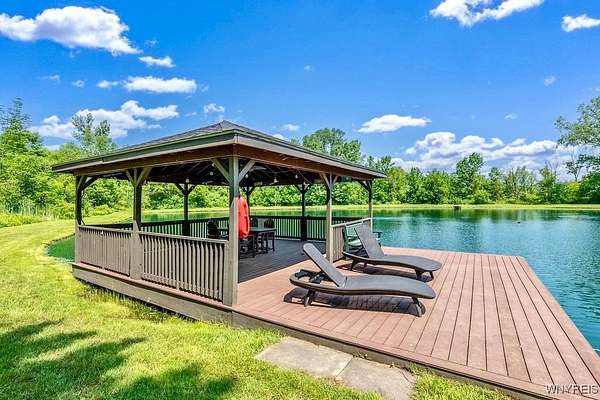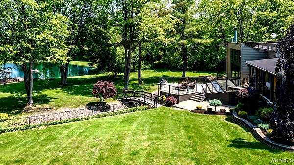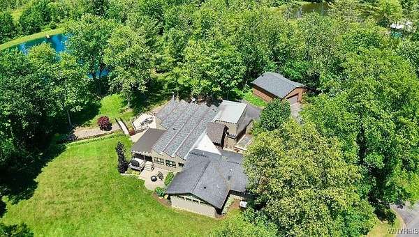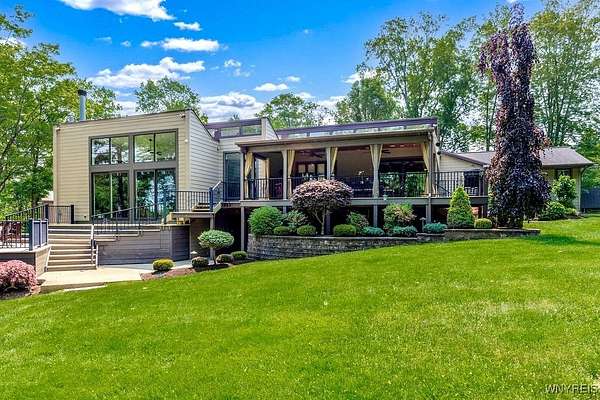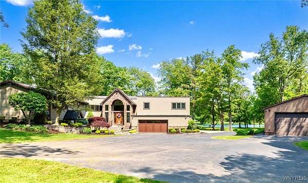 This custom-built home spans 5,184 sqft & is situated on 10.8 acres, featuring 5 bdrms & 5 baths. The property inclds a lg picturesque pond w/covered deck & sand walkout & an insulated pole barn adds functionality w/heat, electric, gas & alarm. Potential mixed use as SINGLE or MULTI-family living or INVESTMENT for rental or Airbnb. Inside, the kitchen boasts granite counters, high-end appliances, an island,bar & pantry, while access to multi-level back patio is avail from the kitchen, dining & living rms. The living rm is highlighted by a unique vaulted ceiling w/transom windows, a fireplace & full wall of breathtaking views. 4 bdrms are located on the main level, 3 of which ftr en-suite bathrms. Custom woodwork is evident through built-in cabinetry, shelving & desks, solid wood doors, trim, wood blinds & plantation shutters. Colden closet systems are installed in all bedrms, as well as pantry,laundry & mudrm. The lower level provides multiple finished spaces, inclding a rec.room w/sliding door to the back patio plus a sm.room w/drain & tiled wall, ideal for dog wash or outdoor clean-up; the other is private entry to a bedrm, living rm & bathrm, suitable for in-law or rental. This home not only boasts an array of impressive ftrs inside but outside as well. The exterior is enhanced by Hardie board cement siding, custom brickwork & a durable rolled rubber roof. Prof. landscaping, sprinkler system & partially fenced side yard, along w/full property invisible fence, provide both beauty & security. The multi-level back deck ftrs a covered upper level adorned w/a cedar ceiling, recessed lighting, ceiling fans & built-in speakers, while the lower deck & concrete patio offer addtl. space & bridge access to a serene pond. The property is also equipped w/Culligan water system, security system & house generator for reliability& peace of mind. Located in Hamburg schools & zoned agricultural, w/Public Sewers & Water, this home is conveniently close to Hamburg village & offers quick access to Rt 219. Interested parties are required to schedule private showings to fully appreciate the unparalleled quality & attention to detail that this property has to offer. Also B1627560