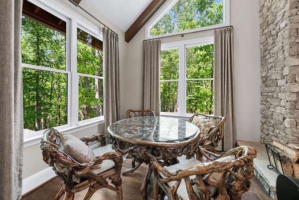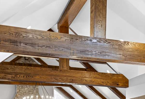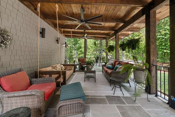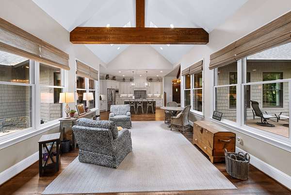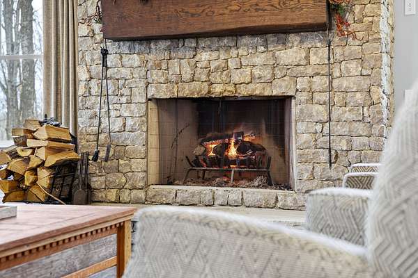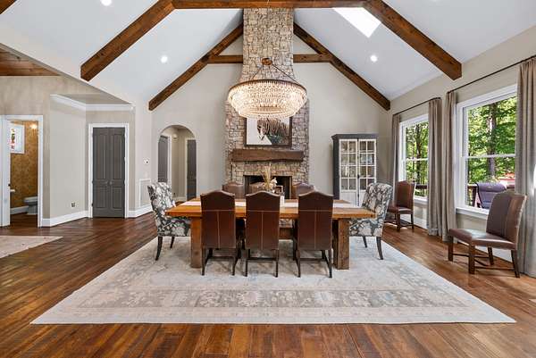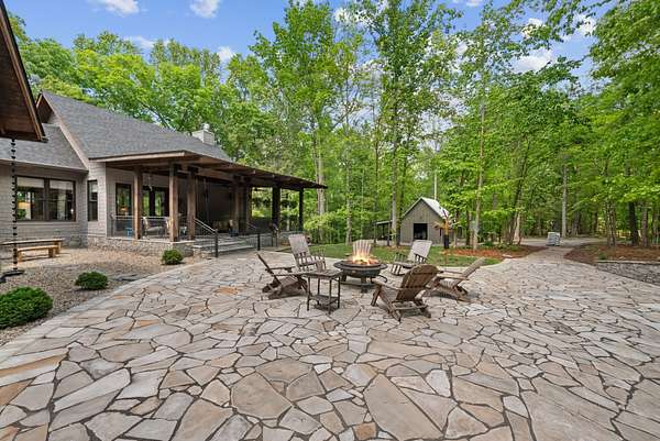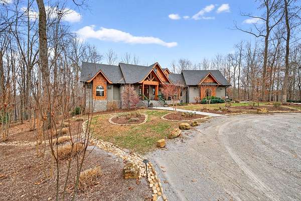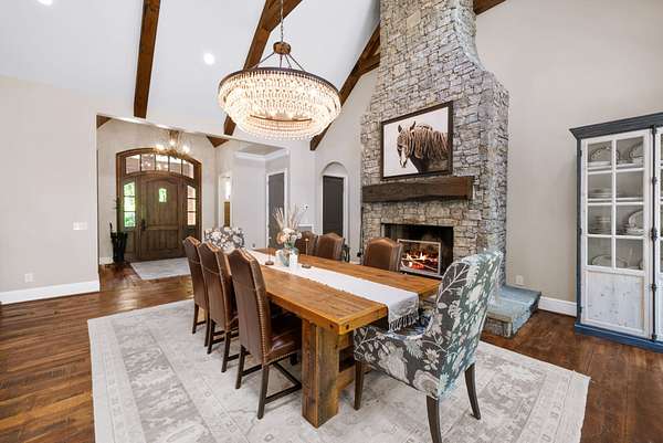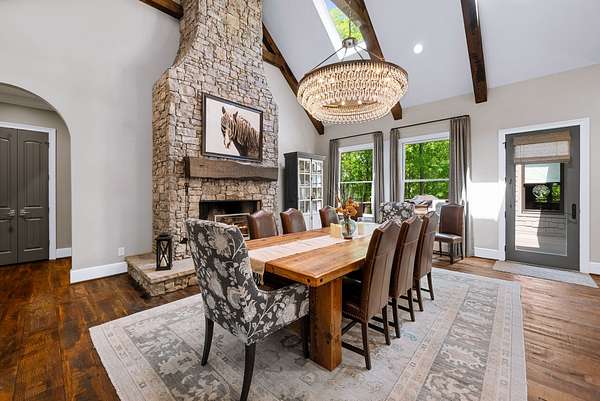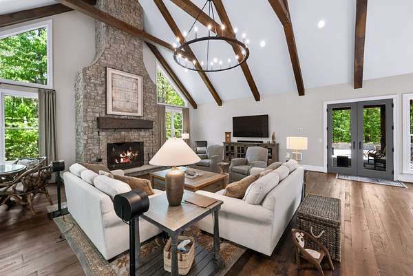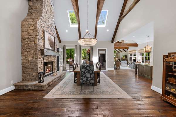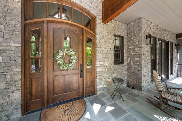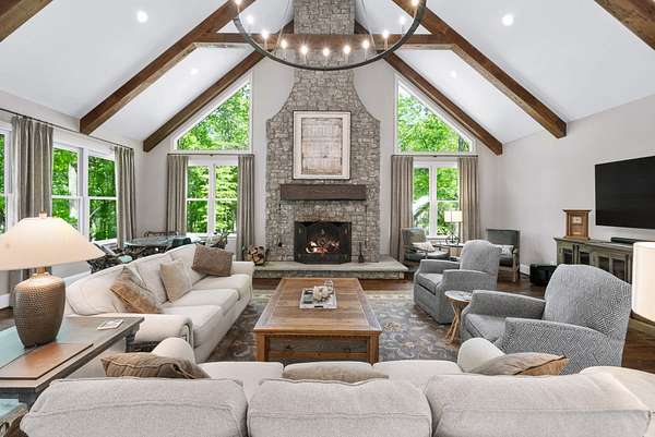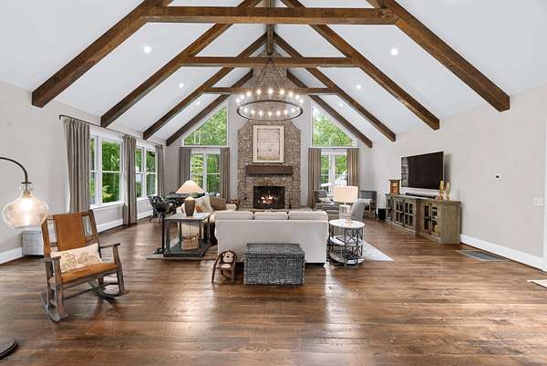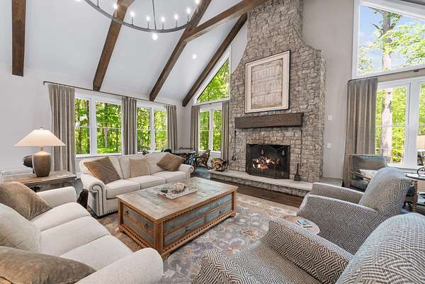 Inside, the open-concept layout showcases exceptional craftsmanship with custom design elements including Tennessee stone and hand-hewn beams, creating a warm, inviting atmosphere. Natural textures and timeless finishes bring character and charm to every space, making the home feel both refined and relaxed.