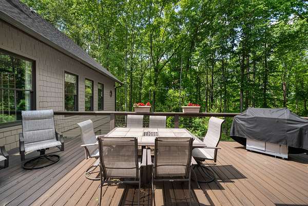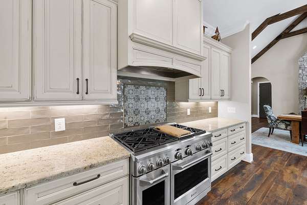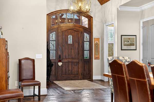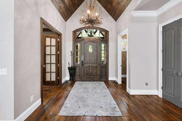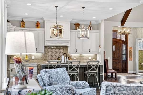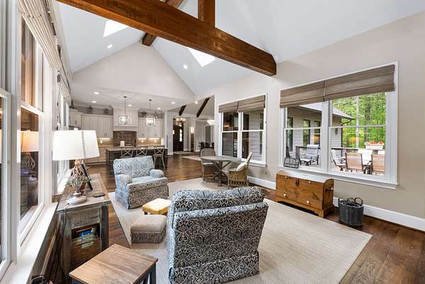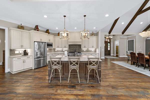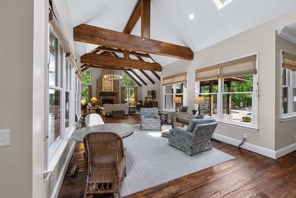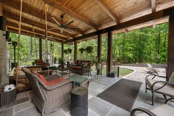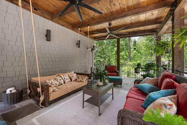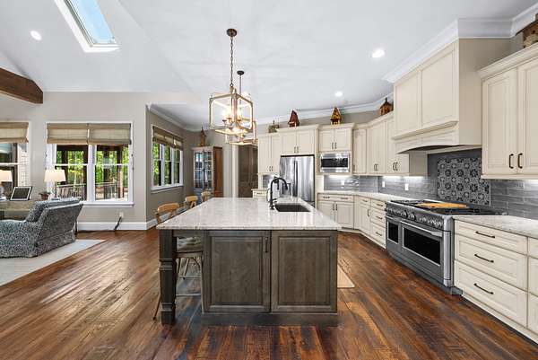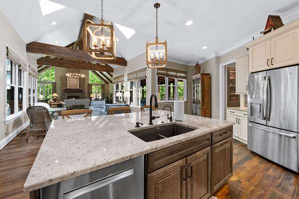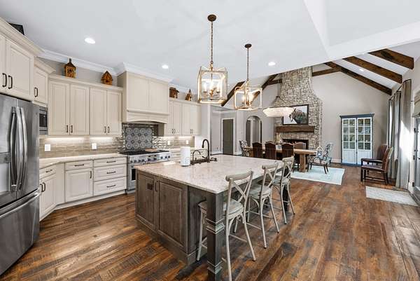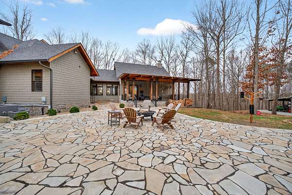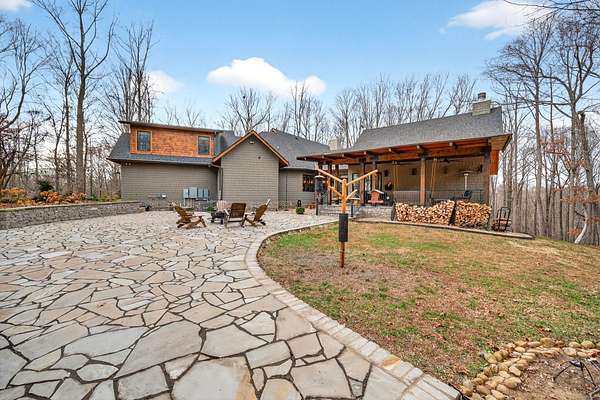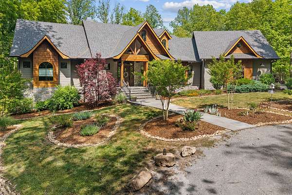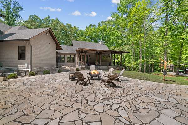 Inside, the open-concept layout showcases exceptional craftsmanship with custom design elements including Tennessee stone and hand-hewn beams, creating a warm, inviting atmosphere. Natural textures and timeless finishes bring character and charm to every space, making the home feel both refined and relaxed.
