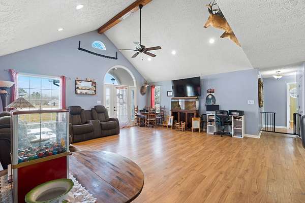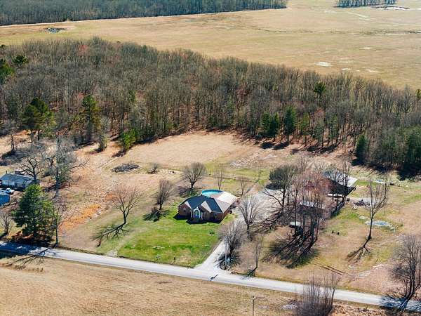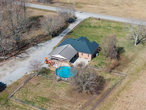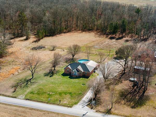 Welcome to a rare opportunity to own a true homestead-ready property offering 16.5 usable acres, a large workshop, fenced chicken coop area and the infrastructure needed for farm, hobby, or rural living. This all brick, 3 bedroom, 2.5 bath ranch-style home provides an open floor plan perfect for everyday country life. A substantial (30'x40') shop building with tall ceiling and concrete floor supports equipment storage, livestock, and serious workshop use. Covered areas and fenced spaces allow for immediate use for animals, gardens, or expansion of a working homestead. A fenced chicken coop supports easy, everyday homestead living, while the above-ground pool with newer deck offers a perfect place to unwind and enjoy peaceful country views. Outdoor features include a covered rear area, large concrete pad, and an above-ground pool with surrounding deck--ideal for relaxing after a day on the land. The acreage offers privacy, flexibility, and room to grow, whether your vision includes farming, recreation, or a multi-generational rural retreat. Properties with this combination of land, infrastructure, and versatility are increasingly hard to find. Schedule your showing soon to experience the full potential this property offers.