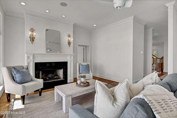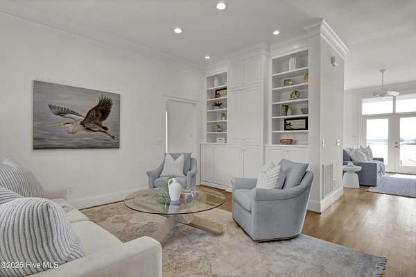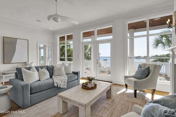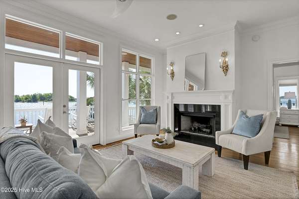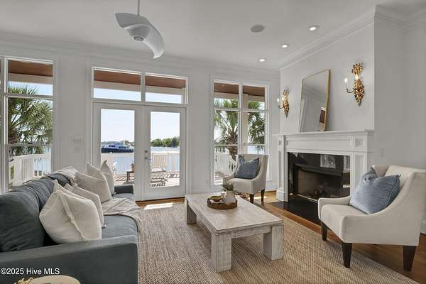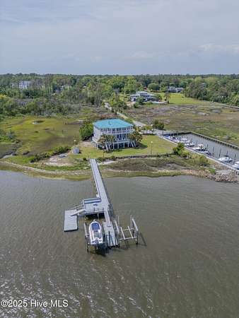 Boaters Paradise! Set on 4.9 private acres with over 260 feet of direct frontage along the Intracoastal Waterway, this exceptional home offers panoramic views of lush marsh, Masonboro Island, and an unmatched coastal lifestyle. Custom built by Eddie Collins, this three-level residence effortlessly blends timeless craftsmanship with modern functionality-all just steps from the water. At the heart of the property is a private dock system, featuring two boat slips with lifts-one rated for 12,000 lbs, the other for 6,000 lbs-complete with shore power and a spacious landing area ideal for entertaining or preparing for a day on the water. An additional 24' x 9' floating dock provides easy access for small boats, paddleboards, and water sports gear, enhancing the home's appeal for active coastal living. Inside, the home offers four bedrooms, two flexible bonus rooms, and a first-floor primary suite. Elegant finishes include hardwood flooring, tile baths, crown molding, and custom built-in shelving in a cozy den. A residential elevator provides easy access to all levels, while metal retractable hurricane shutters on the north and east-facing windows offer security and peace of mind during storm season. Outdoor living is elevated with 400 square feet of covered ground-level deck, ideal for entertaining, and expansive double-decker porches that frame uninterrupted coastal views. The estate also features three oversized garages plus over 400 square feet of additional enclosed storage-perfect for gear, equipment, or a workshop. Additional highlights include a reverse osmosis water system, central vacuum, outdoor shower, and a well water system serving both the home and the irrigation system. Septic system is off site. This is a rare opportunity to own a refined, turn-key waterfront retreat with deep-water access, exceptional privacy, and world-class boating infrastructure-ideally positioned along one of the East Coast's most sought-after coastal corridors.