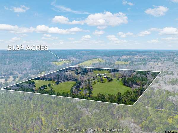 Arrive to the GBH Farm through a solar-powered, code-access gate and follow the tree-lined drive to a beautifully remodeled farm house. The property is a turn-key retreat or primary home for people wanting a residential/hobby farm with beautiful views overlooking the park like forests and pastures that this East Texas location is famous for. Situated on 51.29 acres of cultivated and native pasture, woods with wet weather creeks and a nice pond, the land has been meticulously maintained. There are two separate houses, each with a separate entrance and separate driveway. The 2,047 sq ft primary home is a lovely 1900's farmhouse that has been thoughtfully restored and updated throughout. It boasts several patios overlooking the swimming pool (built in 2021) and outdoor kitchen (built in 2022), Spectrum high speed fiber internet, and wired for backup generators for both barn and home. The horse barn, stalls and tack room are a short walk away. The 2,014 sq ft guest house was built in 1982 has great views of the back of the property and the neighboring owners lake. There is a convenient adjacent 3 car carport and attached shop/storage building. The immaculately and lovingly maintained property is a mixture of gently sloping, open pasture land with beautiful views overlooking the park like forests and trails providing habitat for the abundant wildlife in the area. There are wet weather creeks/draws and a nice stocked pond. There is a fenced vegetable garden and perimeter fencing as well as cross fencing with net wire. The farm has community water and a north/south seasonal creek running through the woods on the west side of the property. Water is piped to each of the stalls, turn outs and pastures and collected in a variety of troughs. The farm has a variety of trails and a blind to hunt or observe wildlife. Palestine is a growing city with access to restaurants, shopping and activities minutes away.