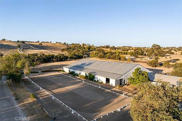 Welcome to Moon Valley Farm -- a rare 20-acre riverfront equestrian estate, formerly known as the Clyde Kennedy Center, offering the ultimate blend of privacy, functionality, and breathtaking scenery. This one-of-a-kind property is perfectly designed for both horse enthusiasts and those seeking a serene country lifestyle, while still being just minutes from town. The centerpiece is a 12-stall Barnmaster barn complete with matted stalls, a spacious 30' x 16' tack room, foaling stall, washer/dryer, storage rooms with an upstairs loft, and full utilities including water and power. Amenities abound with a 70' x 140' indoor arena with sprinklers and lighting--perfect for year-round training or events--and a 100' x 200' outdoor arena. Seven pastures (two irrigated) and eight additional corrals provide ample turnout space with horse-safe fencing, many with shelters. The custom main home, built in 2001, spans approximately 2750 sq ft per with 3 bedrooms plus an office (potential 4th bedroom) and 3 bathrooms. Highlights include cathedral ceilings in the entry and living room, 9-foot ceilings throughout, a floor-to-ceiling river rock wood-burning fireplace, a split red cedar ceiling at the covered front porch, granite countertops, and French doors leading to a deck with sweeping Huer Huero River views. Owned solar (2019), an extra-deep two-car garage, and thoughtful finishes throughout complete this inviting residence. For guests or a workers residence, a charming 500+- sq ft studio offers a full kitchen and bath plus an exterior half bath for boarders. A 1987 manufactured home adds even more flexibility with 3 bedrooms, 2 baths, a bonus room and separate metering at both accessory homes. Enjoy the land's unique features: direct riverbed access for riding, a seasonal pond, windmill, irrigated pastures, garden box, and mature oak, apricot and pistachio trees. With a hay barn, large shop with roll-up doors, 220 power, the 75 GPM ag well plus a domestic well, this property is set up for both comfort and convenience. Whether you're envisioning a thriving equestrian business, a private retreat, or both--this stunning property offers endless possibilities in a truly magical setting. Don't miss the chance to make Moon Valley Farm your own.