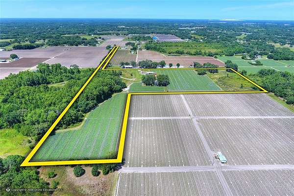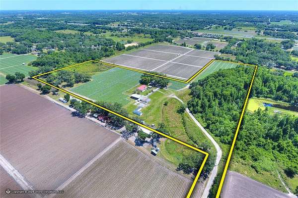 24.24+- acres on Stafford Road in Plant City, located along the explosive I-4 corridor, just a mile away from the I-4 on ramp. This property includes rental income from the homes and farmland ($47,584 annual gross), the improvements consist of a 2,285 SF manufactured home (2004),1,758 SF manufactured home (1996), an office, a large pole barn on concrete slab with a cooler previously used for the vegetables farmed onsite. There is 3 phase power run to the cooler and barn, and each home is metered separately. There are 2 wells, each home has its own. The site is perimeter fenced and consists of 8.5+- acres of net plastic irrigated farmland, currently leased for vegetables. This property would make a beautiful homestead amidst the scattered oaks, with a private driveway, nestled between the producing farmland. A private oasis, while minutes from the conveniences of Plant City.