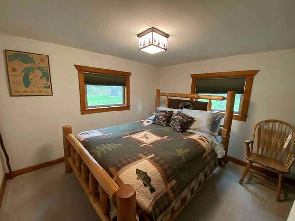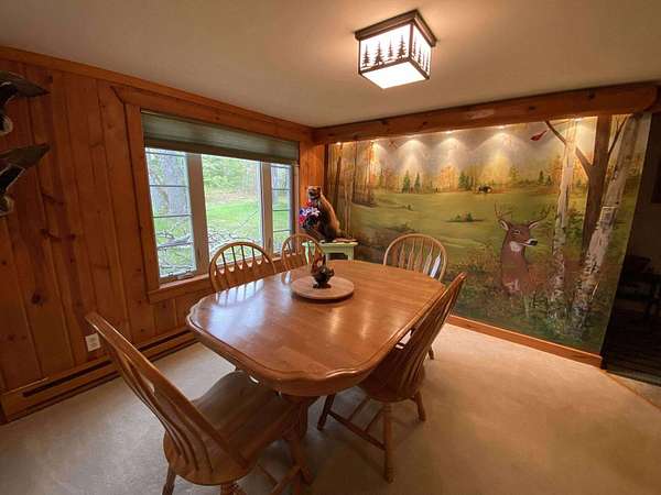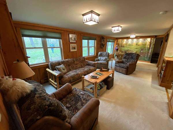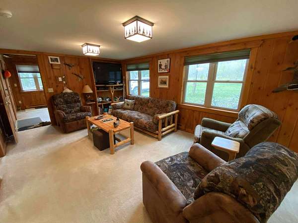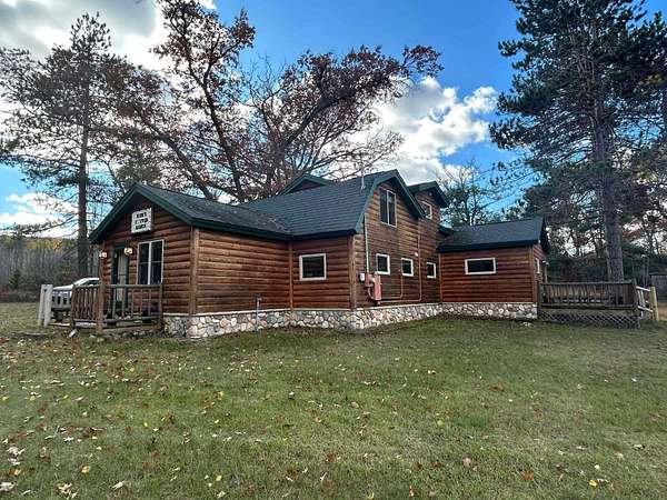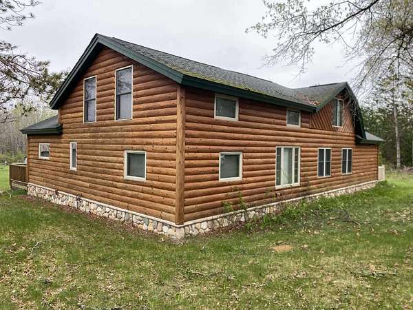 HOME ON 80 WOODED ACRES- 4 bedroom, possible 5 bedroom, 2 bath home on 80 wooded acres. Artesian well feeding into a wetland area on east side of property. Great hunting property with 4 deer blinds. This beautiful wooded 80 acre parcel is on a county maintained road and borders state land on two sides. Log sided and completely renovated in 2009. Large living room with wildlife mural on west wall. Knotty pine interior with custom trim and wood work thru out. Bein sold mostly furnished and ready to move into or use as it is. Could be a seasonal air b & b or year around home. All measurements are to be confirmed by buyer or buyers agent. Trustream internet is ran to the house, buyer would just need to transfer service. Seller is MOTIVATED A-2992