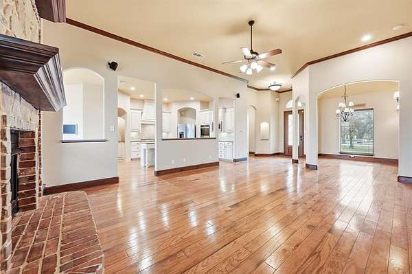 Situated on 2 acres with no restrictions, this exceptional property offers space, privacy, and thoughtful design while still being conveniently close to city amenities. A standout feature of the property is the 4,000 sq ft shop complete with a dedicated office, abundant storage, and an attached newly constructed two-bedroom apartment. Full covered RV hookups and pad for RV up to 50 ft long. Shop also has 3 phase power available. The apartment showcases granite countertops, stainless steel appliance and luxury vinyl plank flooring throughout, creating a clean, modern living space that feels both comfortable and stylish. Inside the main home, attention to detail and quality finishes are evident from the moment you enter. Hardwood flooring flows throughout the main living areas and hallways, creating warmth and home is flooded with natural light, creating a welcoming feel. The kitchen is beautifully appointed and designed for both everyday living and entertaining, featuring a gas cooktop, stainless steel appliances, ample cabinetry, and a butler’s pantry that adds extra prep and storage space. The primary suite offers a private retreat with a cozy gas log fireplace and direct access to the back porch for quiet mornings or relaxing evenings. The ensuite bathroom is spacious and inviting, complete with separate vanities, an oversized walk-in shower, and a deep garden soaking tub, along with a generous walk-in closet. Outdoors, the backyard is designed for both relaxation and gathering. A sparkling pool with attached spa creates the perfect place to unwind, while the covered back porch provides plenty of room for seating and outdoor cooking. With plenty of open yard space remaining, there is room to expand, garden, play or simply enjoy the wide open surroundings. This property combines the feel of country living with the convenience of nearby shopping, dining and everyday necessities.