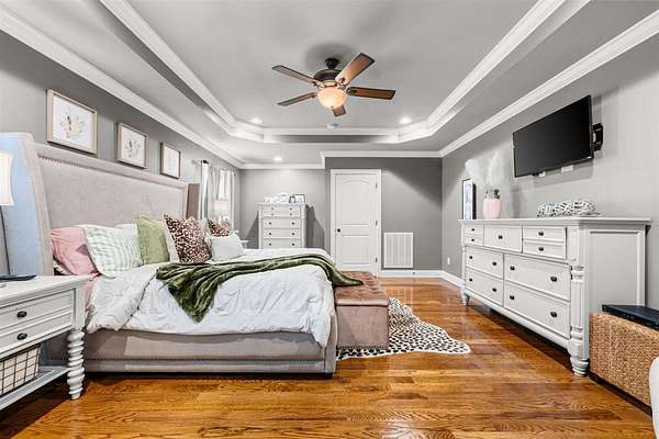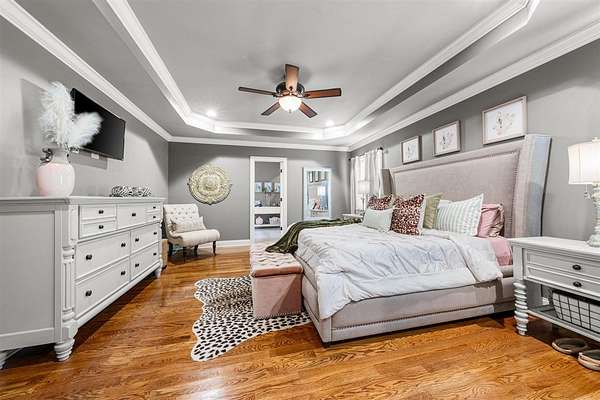 - Attic Fan, Attic Storage, Ceiling Fan(s), Chandeliers, Closet Light(s), Tray Ceiling(s), Walk-In Closet(s)