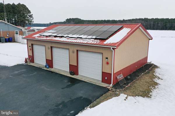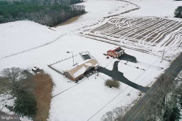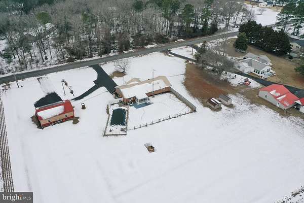 Updated 4BR/2BA on 2+ ACRES - full basement, private inground pool, attached garage, 3-bay detached garage with workshop and storage area, just over the Maryland/Delaware line. 10 minutes to downtown Seaford - 15 to Route 13. A quick 3mi to Cherry Beach Park + Boat Ramp on the Nanticoke River in Sharptown. Lovingly renovated with over $100k of improvements since 2023. New kitchen appliances, quartz counters, custom tile backsplash; replacment vinyl windows, LVP flooring throughout, metal roof, tankless HWH, and more. Large living room drenched in sunlight from triple windows - gas fireplace, LVP flooring, crown-molding. Bright + cheery kitchen w/breakfast bar, opens into the dining area. Sliders to the 3-season sunroom overlooking a fenced area of your expansive yard. Primary bedroom with full, en-suite bath w/stall-shower. 2 additional bedrooms and a flex room for Bedroom 4 or an office. 2nd full bath with step-in stall shower. Barn-door to hte oversized laundry room with plenty of space for a custom drop-zone, leads out to the attached 1-car garage. Massive basement offers tons of space for rooms or storage. Oversized, detached 3-car garage / workshop / storage. Unique opportunity - don't miss this one! Sizes, taxes, distances approximate.