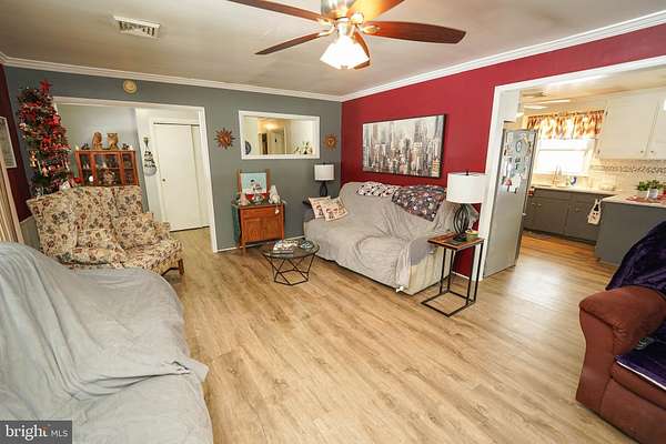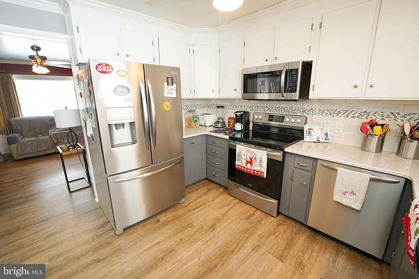 - Attic/House Fan, Ceiling Fan(s), Combination Kitchen/Dining, Crown Moldings, Dining Area, Entry Level Bedroom, Primary Bath(s), Stall Shower Bathroom, Upgraded Countertops, Walk-In Shower Bathroom