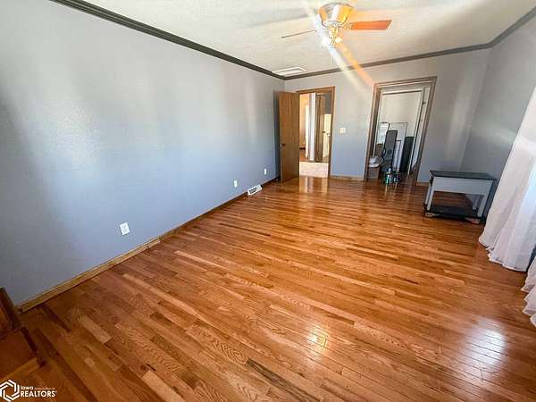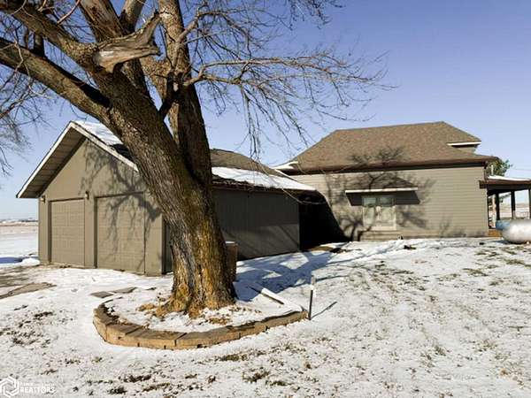 A well-maintained acreage offering country living, high-capacity grain storage, and versatile outbuildings in Mills County, Iowa, located 3.5 miles northeast of Hastings at 56272 380th Street. The 2,286 sq ft home, with kitchen appliances included, features 3 bedrooms with potential for a 4th, 3 full bathrooms, 1 1/2 bath, and a 700 sq ft finished walk-out basement. Built in 1915 with an addition added in 1978, the home blends original character with modern improvements. A 624 sq ft attached garage was added in 2002. Updates include spray-foam insulation on basement walls (2016), Renewal by Andersen windows, newer AC and furnace, updated electrical panel, new water line, new septic system, new water heater, and a well with a new pump. The roof and gutters are approximately 3 years old, and the siding is approximately 2 years old--major systems already taken care of. Extensive onsite grain storage features 120,000+ bushels of combined capacity, including two newer 38,000-bushel bins--one a dryer bin--constructed approximately 10 years and 4 years ago, along with six additional bins built between 1974 and 1982. Two well-built steel utility buildings and one wood-frame storage building provide excellent workspace and storage flexibility. One steel building, built in 1982, measures 50' x 72' x 14', and the second steel building, built in 1978, measures 46' x 60' x 13'. The wood-frame storage building offers approximately 1,300 sq ft of space. All buildings feature concrete floors.