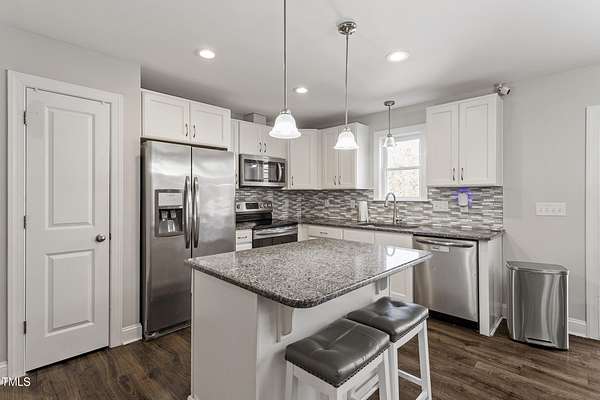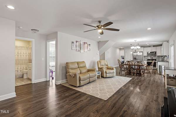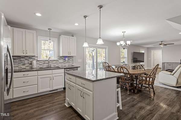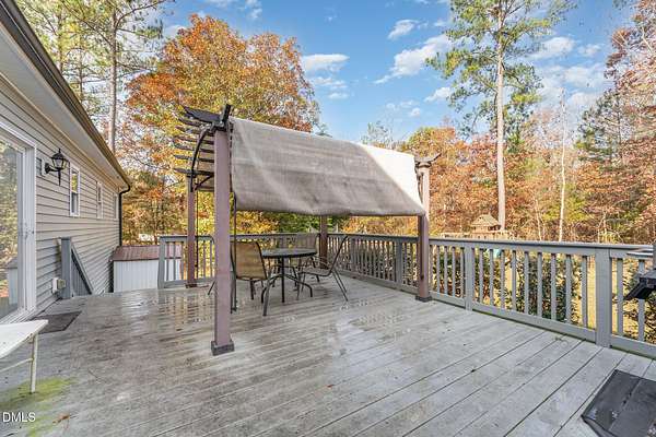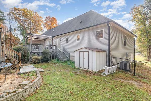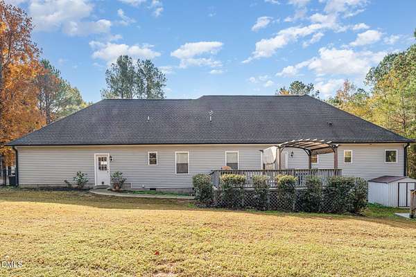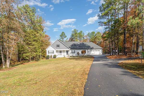 *Recently repriced to reflect today's market. A strong value for privacy, acreage and location heading into the new year! * Conveniently located just 20 minutes from Raleigh, 12 minutes from Rolesville, 8 minutes from Bunn, 12 minutes from Louisburg, and 13 minutes from Wake Forest. Arrive at your beautiful ranch-style home through a fully paved extended driveway offering ample privacy from the street, a large parking pad, and a convenient roundabout. As you approach, you'll be greeted by a stunning tree-lined lot encompassing 2 acres of unrestricted and serene space-bring your chickens! The charming rocking chair front porch invites you inside, where LVP flooring extends throughout the home. Just off the entry foyer is a versatile multi-use space that can serve as an office or additional bedroom. The bright, inviting kitchen is perfect for entertaining, featuring a center island, elegant granite countertops, stainless steel appliances, and soft-close cabinets. A lovely dining area flows seamlessly into the expansive living room. The oversized primary suite boasts a beautiful en-suite bathroom with cultured marble countertops, tile flooring, a garden tub, and an oversized shower. Two additional bedrooms and a well-appointed hall bath, also with a cultured marble vanity, complete the main living area. You'll appreciate the functional mudroom providing access to the garage with a built-in workbench and hobby area, or step through the sliding glass doors to a lovely deck overlooking the fenced backyard. Most impressive is the unfinished space upstairs of 2,340 square feet-already stubbed and roughed in for plumbing and electrical-offering incredible potential for additional bedrooms, bathrooms, or recreation space, all with exceptional ceiling height and ready for your personal touch. This residence also includes an insulated and oversized two-car garage. (Note: the detached white storage shed will convey with an acceptable offer)