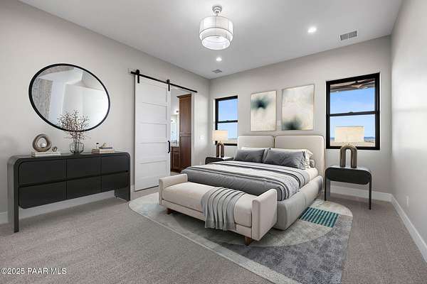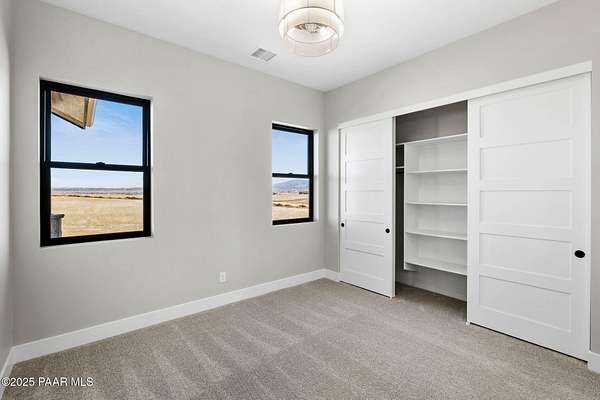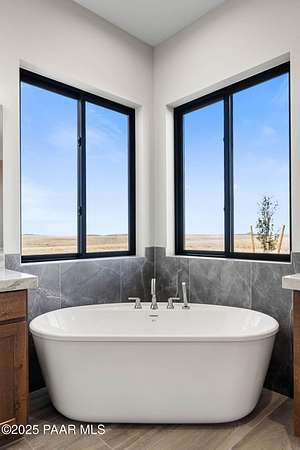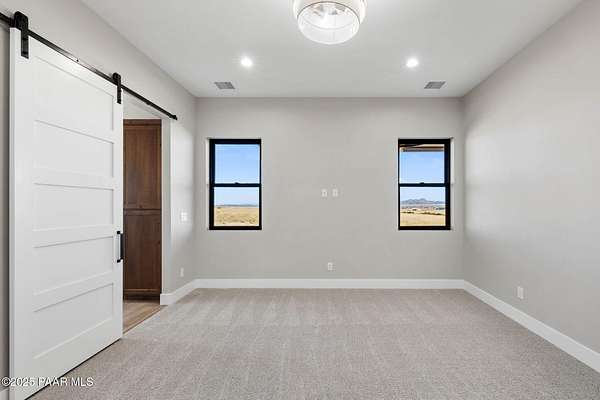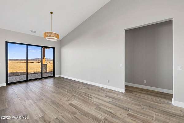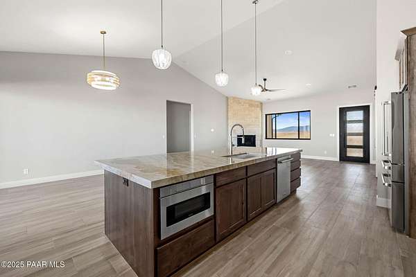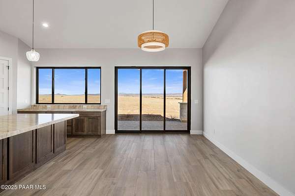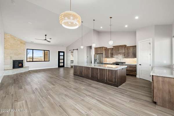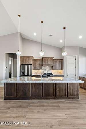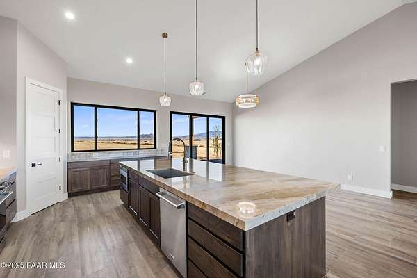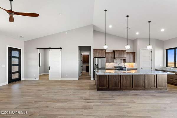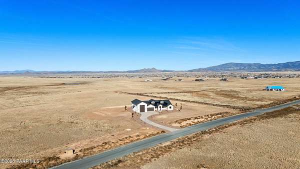 WELL REPORT ATTACHED 30+GPM. Stunning new custom home in Copperfield with breathtaking PANORAMIC views! This 2,394 sq ft residence sits on 4 acres with 4 bedrooms plus an office & 4 bathrooms. Epoxy-coated 2 car garage plus a 22'x50' RV Garage for 4+ cars. The open floor plan features vaulted ceilings and modern large plank wood-look tile flooring, complemented by plush carpeting in the bedrooms. The chef's kitchen boasts a spacious quartzite island, matching backsplash, custom knotty alder cabinetry, and premium Thor appliances, including a 6-burner gas range & pot filler. Relax by the thermostat-controlled pellet-burning stone fireplace. Enjoy the outdoors on the covered paver front porch and back patio. Full paver driveway to the street with front & back landscaping.