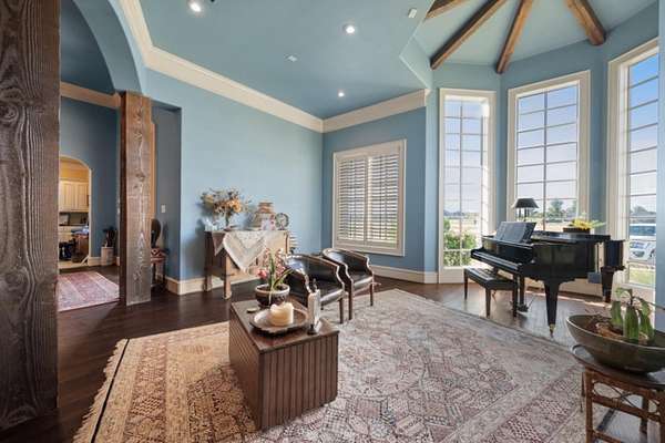 Possible Equestrian Center! Prime commercial potential! Your dream home! The opportunities for this amazing property are endless! Welcome to an exquisite custom-built 7 bedroom, 5 full baths, plus 2 half bath, 4 car garage estate nestled on a private gated 16 acre compound! The grandeur of these ceilings enhances the spacious living areas. The kitchen boasts top-of-the-line Wolff appliances, 2 of each appliance, a commercial pizza oven, built-in refrigerator/freezer plus a fireplace in the breakfast nook. The master suite features a private in-ground jacuzzi, his/hers closet w washer/dryer & an advanced Kohler shower. Entertainment options include 7 fireplaces (2 wood burning (one indoor, one outdoor), 5 gas fireplaces with remotes), a downstairs theater & outdoor living area with a screened-in patio wrapping around the saltwater pool, plus two hot tubs (on their own well). Additional spaces include a sewing room, reading room with fireplace, private chapel with hidden entrances and two barns (60x40 & 60x45). This home features 3 washer/dryer spaces & Solar panels offer minimal electricity costs. This land has space for 3 possible ponds. Experience an amazing one-of-a-kind estate with endless possibilities, both now and for future growth, in one of Lubbock's most desirable locations!