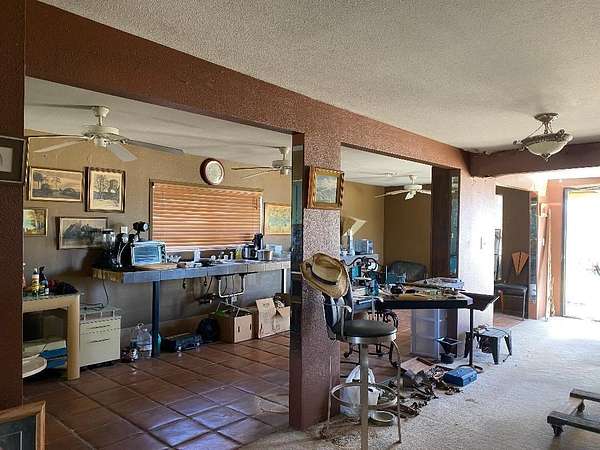 CONTRACTOR or DIY SPECIAL! Make this your full-time home or vacation playground! Johnson Valley, Home to King of the Hammers World famous Off-Road Event and Race for the past 20 years! This incredibly priced opportunity has views of some of the KOH main attractions such as Chocolate Thunder and is not too far from the Johnson Valley OHV Park. There are legal Off-Road Trails all throughout Johnson Valley and surrounding areas, as well as licensed vehicle trails all the way to Big Bear. In this Rural Living area, there is also plenty of residents with horses and other animals. It's a great place to do anything outdoors, from Off-Roading to hiking to horseback riding to hunting to Stargazing and beyond! This is a single family home with a huge detached garage sitting on 5 acres of desert land with incredible views in every direction. This property has a WELL for water, although the well was damaged long ago and has not been operational in many years. Ghost Road is a decent dirt road to get to the property, although there is a very soft sand segment on Maloof approaching the property. If you are unsure, please park back where it is hard packed and walk to the house.