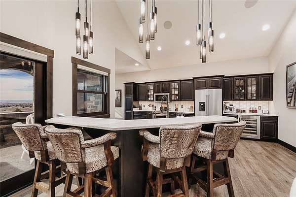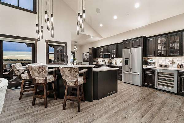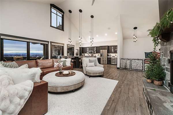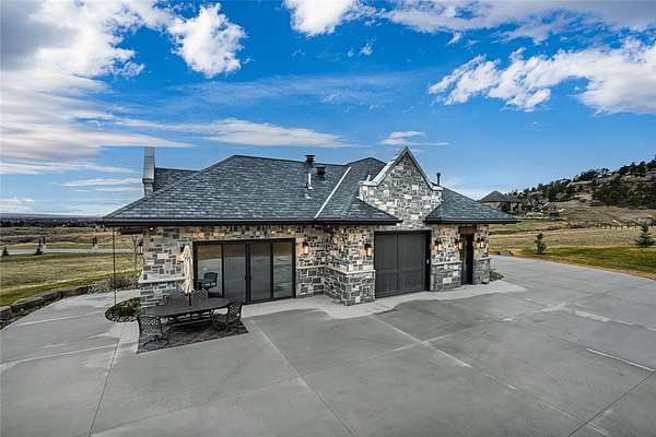 Ideally located near the iconic Billings Rims, this extraordinary luxury estate offers panoramic views of the Beartooth and Pryor Mountains. Situated on just over 55 acres within a private gated community. Primary residence features 3 beds, 2 full bath, 2 half bath, 3-Stop Elevator, 14-car garage w/ hydronic heated floors that also warm the home. Heated driveway at main house, commercial fire suppression, 32 kW Generac backup generator. Sculptural metal stair railings, a grand gas fireplace, a Highlife hot tub, multiple fire pits, Hunter Douglas treatments, dramatic FX lighting. A separate wellness center/gym/office w/ half bath, 22 kW generator, heated overflow garage w/stunning canyon views. Additional amenities include a miniature animal farm, RV hookups, gated entry, and direct access to miles of biking and walking trails. Meticulously overbuilt for refined Montana living.