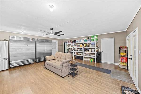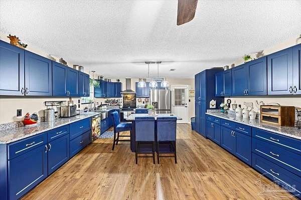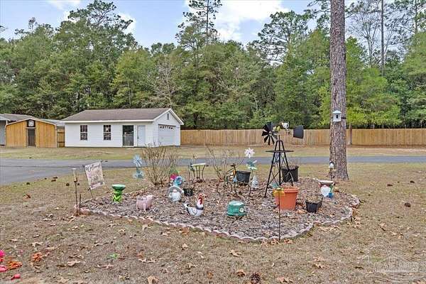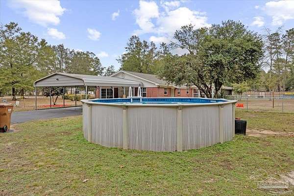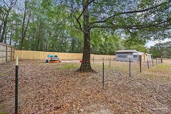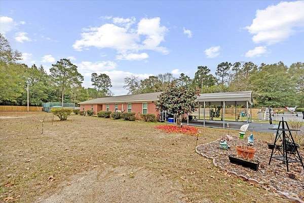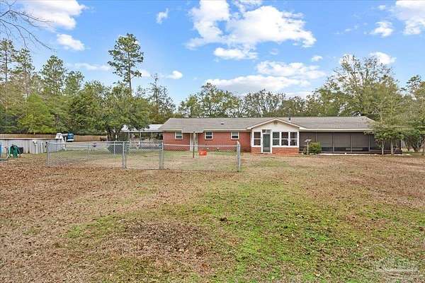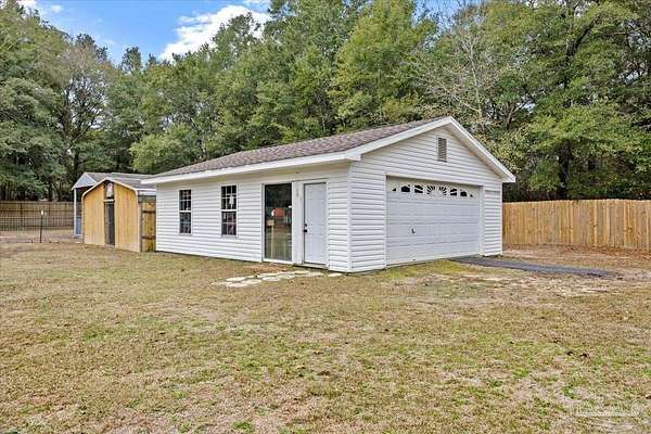 Seller providing large use your way credit - reach out for details! Welcome to a true homesteader's paradise set on 2.5 acres with space, flexibility, and upgrades that are hard to find. This 3-bedroom, 3-bath home offers 2,633 square feet of living space with wood laminate flooring throughout the main areas and tile in all bathrooms. A fully fenced property with an electric gated entry provides privacy and security, while mature fruit trees, open land, and multiple outbuildings create endless possibilities for hobby farming, animals, storage, or future expansion. The kitchen has been completely renovated and is the heart of the home, featuring new cabinetry, granite countertops, stainless steel appliances, a farm sink, and a center island. A formal dining room and spacious living room offer comfortable gathering spaces, complemented by updated light fixtures throughout. The primary bedroom includes an ensuite bath with granite counters and private doors leading directly to the screened porch. One secondary bedroom features built-in shelving, while another offers an oversized layout ideal for flexible use. A converted two-car garage adds exceptional functionality, offering a full bathroom, wood laminate flooring, a mini-split AC unit, and a full laundry room with extra storage - perfect for a bonus living area, home office, or guest space. Additional highlights include a sunroom with AC, a screened porch, a new above-ground pool, tennis court, carport, chain-link dog run, and two barns or animal-ready outbuildings with pens for chickens, goats, or other livestock. Major systems are already in place with a Generac whole-house generator, HVAC less than four years old, and a roof replaced in 2019. A detached two-car garage provides even more storage or the potential to convert into a guest house.