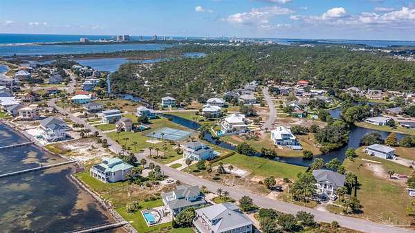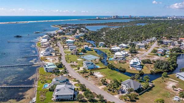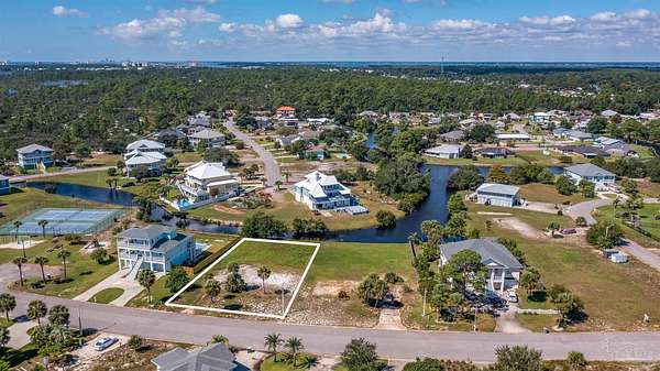 From Perdido Key, go across the Theo Barrrs Bridge and turn right on Gulf Beach Hwy and go 2.3 miles and turn right on Grand Lagoon Blvd, and lot will be the second lot from the tennis courts and playground across the street from the Intracoastal waterway.