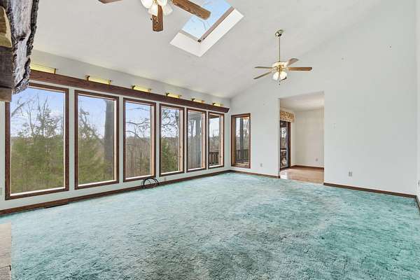 Discover a truly rare Bull Shoals Lake opportunity--6.3 acres of lakefront land wrapped in mature trees, privacy, and the peaceful beauty of the Ozark Mountains. This property offers the perfect blend of country-cozy living and lake life, with a tucked-in, secluded feel that brings nature right to your doorstep.Inside, the home welcomes you with a stunning floor-to-ceiling stone fireplace and a wall of windows that frame nothing but woods, wildlife, and serenity. Skylights add even more natural light, creating a warm, airy atmosphere throughout the main living area. The spacious kitchen features generous countertop space, abundant cabinets, and double pantry storage, plus both an eat-in kitchen and a separate dining area--perfect for hosting gatherings of family and friends.With multiple bedrooms and bathrooms, there's room for everyone. The lower level is a blank slate ready for your vision--family room, game room, guest suite, workshop--whatever suits your lifestyle. A finished full bathroom on the lower level makes expansion easy and flexible.For hobbyists and outdoor enthusiasts, this property has even more to love. The attached double-car garage plus a large workshop provide space for woodworking, crafts, lake toys, and equipment. In addition, there is also a carport for more storage and covered parking. With 6.3 wooded acres, you'll enjoy hiking, exploring, wildlife watching, and the peaceful feeling of being enveloped in nature while still having the comfort of home close by.This is more than a house--it's a lakefront retreat with land, privacy, and endless potential. Whether you're looking for a full-time residence, a family getaway, or a nature-lover's sanctuary, this property delivers the rare chance to have it all on Bull Shoals Lake.If you've been dreaming of space, beauty, and lake living--this one is a must-see.