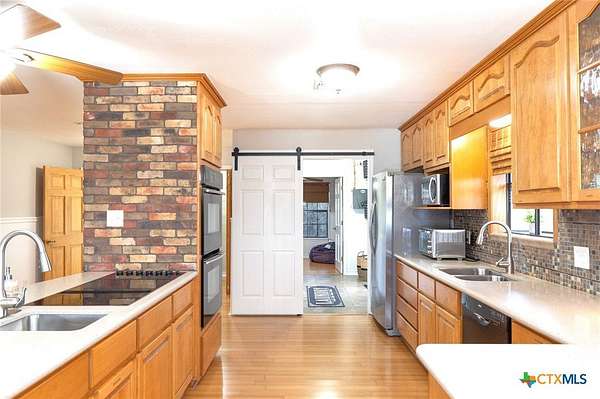 Set on nearly 3 acres of prime, tree-filled riverfront land, this exceptional property offers rare freedom with no restrictions on land use, making it ideal for family gatherings, unforgettable weekends with friends, or a high-performing vacation rental. With direct frontage on the Guadalupe River, this retreat blends relaxed luxury with adventure-ready living. The home features a bright, open floorplan designed for connection and comfort. Natural light fills the living spaces, while the well-appointed kitchen anchors the home and is perfect for entertaining large groups. A dedicated game room adds a fun, resort-style element-ideal for evenings after a day on the river. The primary suite is conveniently located on the lower level, offering privacy and ease of access. With accommodations that sleep up to 10, the home is thoughtfully designed to host with ease. Outdoors, a metal garage with three roll-up doors provides ample storage for boats, ATVs, and gear, complemented by plenty of parking for guests and gatherings. Whether your vision is a personal riverside escape or an income-producing destination, this property delivers space, flexibility, and unforgettable riverfront living. Plenty of parking, sold furnished. The 1.377 acre homesite plus additional 1.36 acre adjoining lot are combined for a total of approximately 2.74 acres. Seller may consider owner financing.