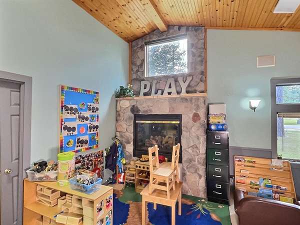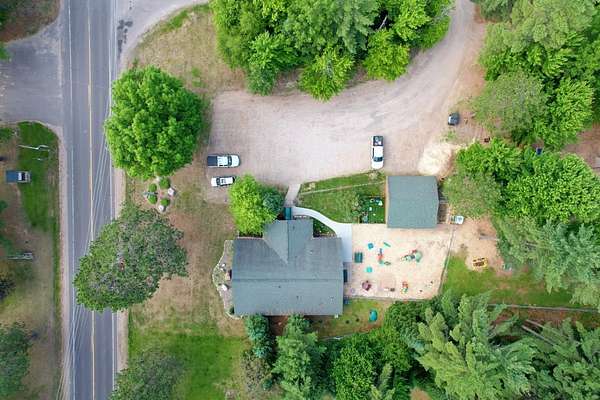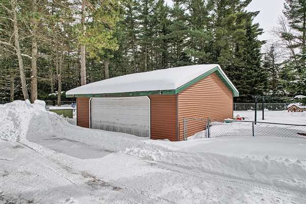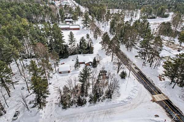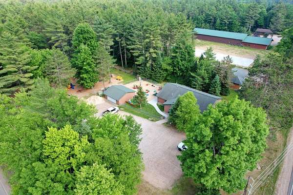 This highly adaptable 2,600 sq ft commercial building in St. Germain, WI sits on a corner lot with 185' of frontage on STH 155. Set on 1.5 acres with plentiful parking, the property currently operates as a daycare, but offers the flexibility to transition into a wide range of uses to suit your vision. Seller will deliver the building vacant or would consider a leaseback from the new owner, with lease terms to be negotiated. Built in 2001 as a pizzeria, the single-story building features in-floor hydronic heat, central A/C, gas fireplace, & two public restrooms with stalls. Recent updates include new siding, doors, & mechanical systems. Floating interior walls allow for easy reconfiguration as needs change. The roof is approx 12 yrs old & the oversized septic, originally designed for restaurant use, offers exceptional capacity. A 26x26 detached garage provides additional storage & the level lot ensures great visibility, making this an ideal opportunity for your office or retail needs.