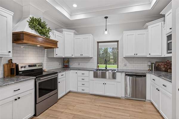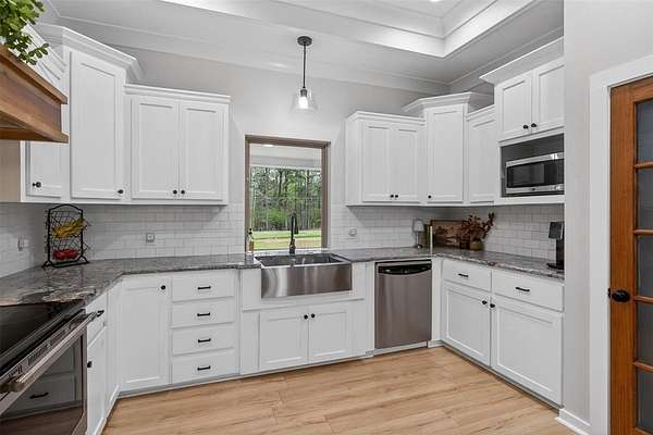 This Modern style farmhouse built in 2022 positioned on 1.8 acres with a pond is exactly what you need. A warm welcome and relaxation are provided with your wrap around front porch. Unlock the door to see the beauty inside of an open floorplan and neutral colors throughout. The updates offered within every space will delight you and your guests. The remote location offers a serene lifestyle, yet your home is just minutes away from everything you would need and a great school district as an added bonus! DO NOT wait to see this one, call me and we can set up a private viewing of this dream home.