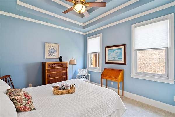 Step inside to an open and inviting main-level design, where soaring ceilings, elegant architectural details, and seamless flow define the living spaces. The luxurious owner's suite is a sanctuary of comfort, featuring a spa-like bath with double vanities, a spacious tiled shower, a soaking tub with picturesque views, and two oversized walk-in closets. The gourmet chef's kitchen is a dream for culinary enthusiasts, equipped with Viking appliances, double ovens, a six-burner gas cooktop, a massive island, granite countertops, custom cabinetry, and a walk-in pantry. Adjacent to the kitchen, a cozy keeping room with a stone fireplace creates a warm and inviting atmosphere.