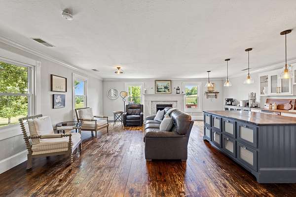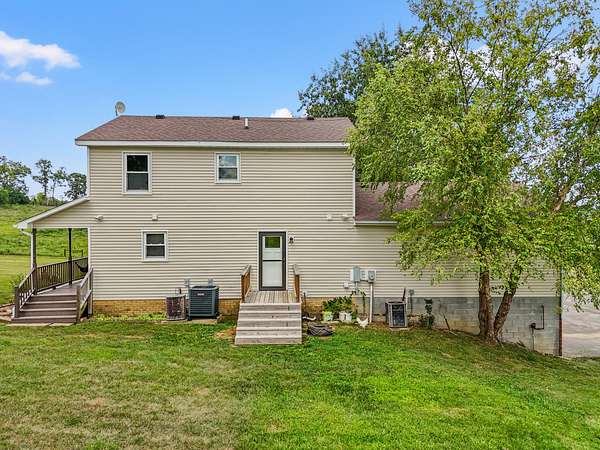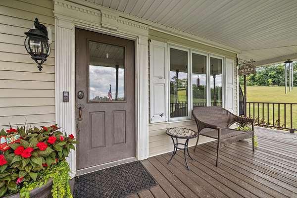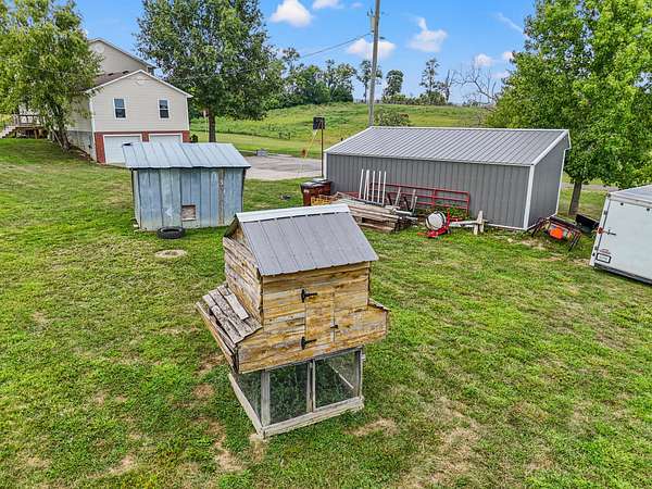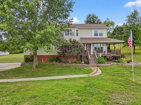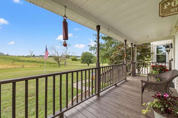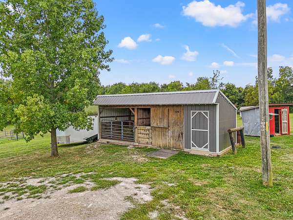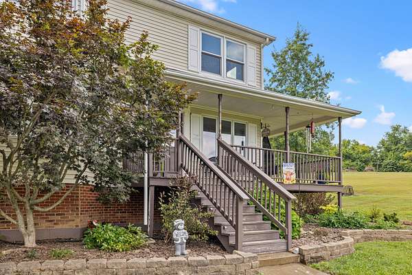 Price Reduction! This spacious, custom-built home sits on 10 private acres, thoughtfully set back from the road for ultimate tranquility.This property is truly horse-ready, featuring a fenced grazing field and a two-stall horse barn with a tack room built by Kentucky Barns. You'll also find fruit trees, a chicken coop, and ample space for a garden, making it the perfect place to embrace a peaceful, self-sufficient lifestyle. Relax on the deep, wrap-around porch. Inside, the home boasts beautiful hardwood floors throughout, abundant natural light, and charming trim details.The custom kitchen features a generous island with plenty of storage and stainless steel appliances . The entry is complemented by a flex space that is currently being used as a formal dining room. The first-floor owner's suite offers convenience and boasts a large jacuzzi tub. The first-floor laundry room offers a handy laundry chute from the second floor.Upstairs, you'll discover three additional bedrooms, a full bathroom, and an expansive walk-in storage closet with a built-in organizer.The full walkout basement provides even more space with an extra laundry room with ample storage, an entertainment room, and two car garage.