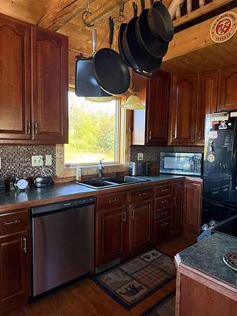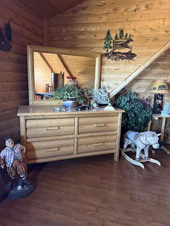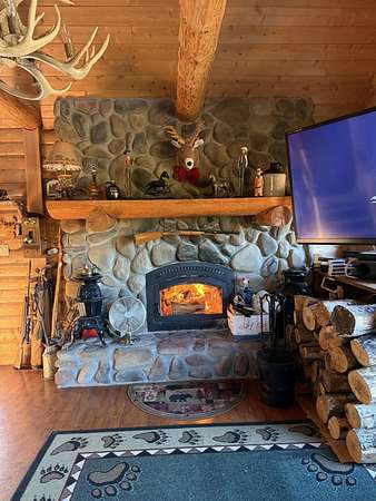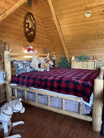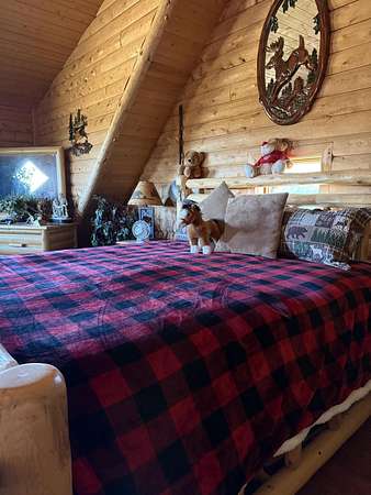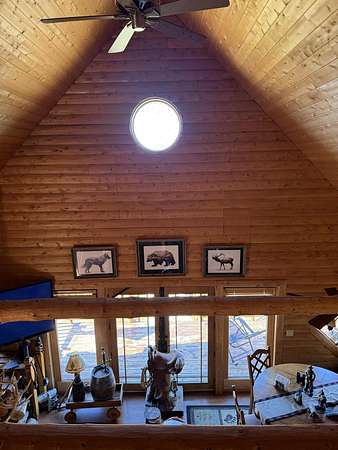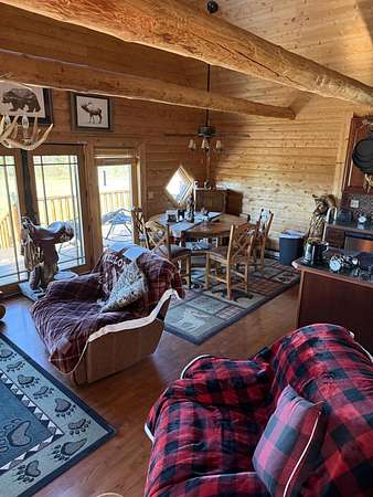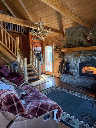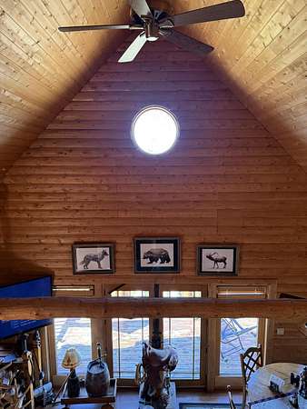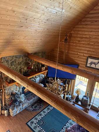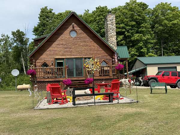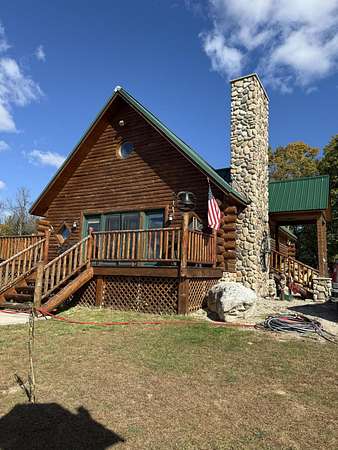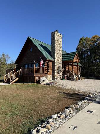 Est $2,645/moLOG CABIN retreat with fieldstone accents situated on a hilltop boasts of 40.04 acres with spectacular views and bountiful wildlife. 41' x 30' pole barn with electric and cement floor, 30' x 40' cement basketball/pickleball court, perennial gardens, grape vines and apple trees. 3 bedrooms, 2 baths, vaulted ceilings, 21' x 21' loft bedroom, wood laminate floors, 2 bedrooms on main level, massive stone fireplace in living room and partial basement. F/A furnace is 3 years old. This unique property is seldom found and impossible to forget.