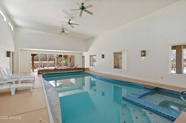 Public Remarks: Custom Executive Acres estate located in the very desirable foothills of the Huachuca Mountains! Inviting courtyard that includes a relaxing water feature setting the perfect tone when entering this architecturally appointed interior. Resort style living including an expansive indoor heated pool that connects both the main house and the Casita! Includes a spacious 3 car garage and an additional 2 car carport. This thoughtfully designed home blends indoor and outdoor living effortlessly, including an exterior spiral staircase leading to the second story deck - Check out those views!! Property attributes include a block wall enclosing the entire 2 acre parcel, a private well, whole house generator, water collection system, RV parking and large detached metal shop!!