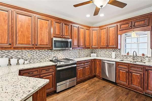 - Dishwasher, Disposal, Gas Cooktop, Gas Oven, Microwave, Range Hood, Refrigerator