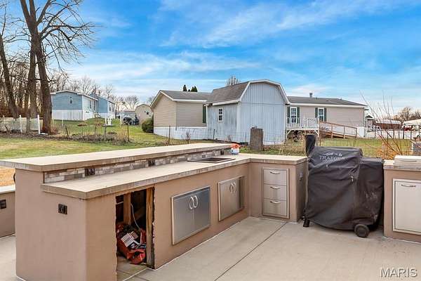When you walk outside you will find a large, flat backyard with ample room for recreation, entertaining, or future use. The back patio is designed for an outdoor kitchen, with most components already in place and awaiting final hookups. A large outbuilding provides excellent storage or workshop space, adding even more value to this versatile property.