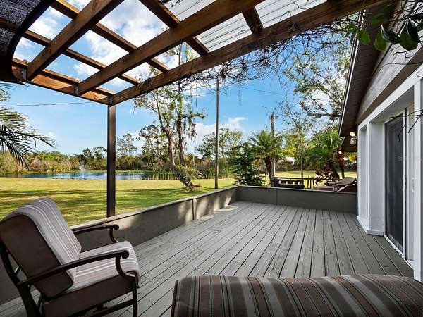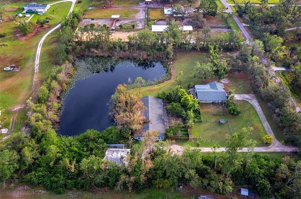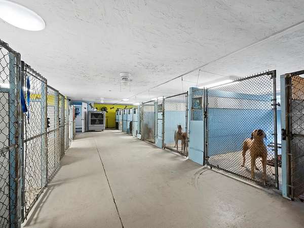 Private compound on almost 5 acres with main house, guest house & 5000 SF outbuilding creates a serene oasis tucked at the end of a quiet country lane. This charming, established neighborhood is conveniently located and very HORSE FRIENDLY! The main house (3 Bed/2.1 Bath) & guest house (2 Bed/1.1 Bath) are updated. The 5000 SF kennel building features a thriving Pet Resort business! All buildings have new/newer roofs & windows! Feels far away, yet so close to Siesta Key beaches and vibrant downtown Sarasota. Tons of updates throughout the property. The main house features a modern kitchen and bath updates with a new roof in 2023. The open floor plan and soaring ceilings perfectly frame the lovely views of the L-shaped pond. Thoughtfully designed, this home offers ample storage with a large pantry and separate laundry room with half bath. The large decks provide expansive views of the pond and garden area. The guesthouse, situated well away from the main home, was nicely renovated in 2020. The two-bedroom, one-and-a-half-bath cottage with vaulted ceiling and open floor plan feels and lives much larger than its 1,500 square feet. The living room sliders opening to a walled patio/garden space create a private, serene retreat. The freestanding kennel building, measuring about 5,000 square feet, includes reception and grooming areas, plus a half bath. The kennel includes 30 dog runs, nine cat rooms and three isolation areas for flexible accommodations. The proximity to population centers and easy highway access offers so much potential for pet boarding, doggie daycare, professional dog trainers or show handlers. This well-maintained property is truly an unexpected find and a rare opportunity that blends privacy and convenience. If you've been searching for a family compound, home-based business, dog property or horse property, schedule your private tour today. Check out the tour links, and don't miss the drone tour in link 2! More photos available upon request.