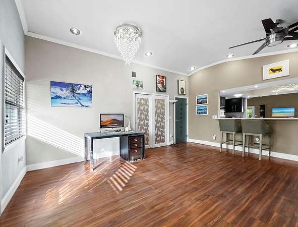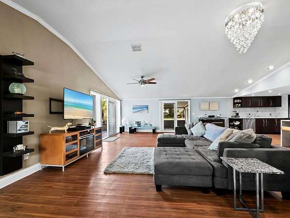 - Cathedral Ceiling(s), Ceiling Fans(s), Coffered Ceiling(s), Crown Molding, Eat-In Kitchen, Kitchen/Family Room Combo, Open Floorplan, Primary Bedroom Main Floor, Vaulted Ceiling(s)