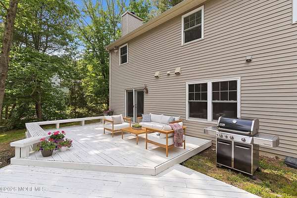 Center hall colonial on a sprawling 1.62 acre property is what we all fantasize to own - so here is your chance, and it's in the popular Francis Mills neighborhood! Home is nicely set back with a long driveway. Charming living & dining rooms has spotlights, hardwood flooring, with chair and base moldings. You'll love the open floor layout in the kitchen and family rooms! Kitchen has granite countertops, stainless steel appliances, snow white cabinetry and it leads into the family room where you relax at the wood burning fireplace. French doors lead out to an amazing deck. Upstairs, you'll find four bedrooms including a large primary bedroom with walk-in closet and shelving. His/her vanity in the primary bathroom, along with a soaking tub, and a separate shower stall with built-in shower seat. Come make this your family's dream home!