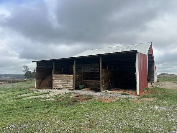 There is a small office building that has a bathroom on the farm. There is also a litter barn that has a shop in a side shed. There are several homesites on the property that have great views over Town Creek Gorge. The home is a singlewide four bedroom and two bath home.