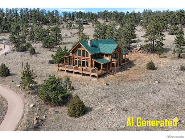 From HWY 287 turn west on W County Road 74e (Red Feather Lakes Rd) follow to Eiger Rd (Glacier View Meadows Gate 1) and turn left. Continue to follow Eiger Rd. to the right where it branches with Thunder Mountain Rd. Continue up the hill until Eiger Meets Le Conte and turn left, property is northwest of the intersection.