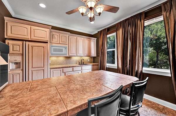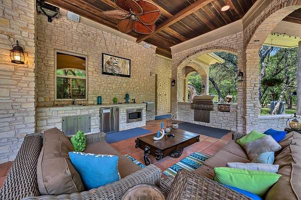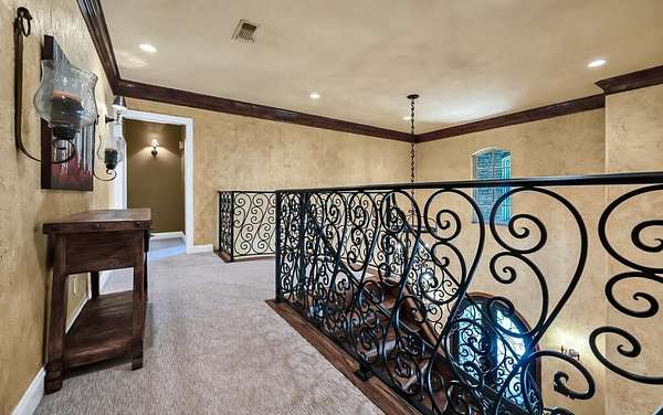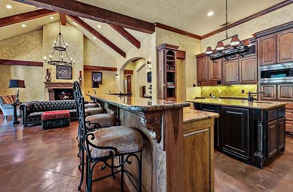 Nestled among the serene backdrop of towering trees and rolling Texas acreage, this elegant estate offers an unparalleled combination of luxury and tranquility. The moment you step through the arched entryway, you're greeted by rich architectural details and warm natural finishes, creating an inviting ambiance throughout. Spacious living areas with oversized windows invite sunlight to pour in, highlighting the custom wood cabinetry, decorative ironwork, and crown molding.