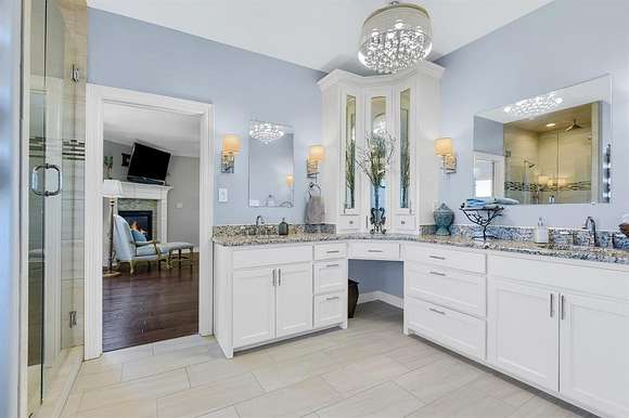- Built-In Features, Built-In Wine Cooler, Chandelier, Decorative Lighting, Double Vanity, Dry Bar, Eat-In Kitchen, Granite Counters, High Speed Internet Available, In-Law Suite Floorplan, Kitchen Island, Multiple Staircases, Natural Woodwork, Open Floorplan, Pantry, Second Primary Bedroom, Sound System Wiring, Walk-In Closet(s)