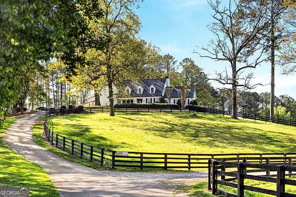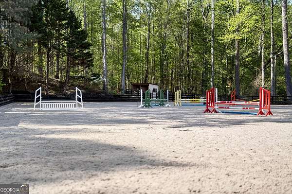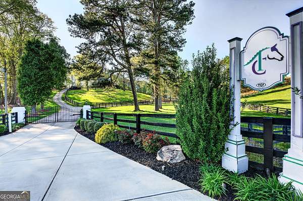 Discover the pinnacle of equestrian living with this exceptional 9-acre horse farm in Canton, Georgia, thoughtfully designed to blend refined residential living with premier equestrian amenities. The beautifully updated residence sits on approximately two acres of professionally landscaped grounds, featuring a gated entrance, new concrete driveway, and ambient landscape lighting. Outdoor living is elevated with a private backyard retreat complete with a heated pool and spa, travertine decking, screened-in porch, and bocce ball court, ideal for both relaxation and entertaining. Inside, the home showcases hardwood floors, custom wood-beamed ceilings, and a fully renovated kitchen with high-end appliances. The spacious primary suite offers a luxurious, updated bath with custom cabinetry, while additional upgrades include modern lighting, new carpeting, fresh interior paint, and custom built-ins. A gas fireplace anchors the main living area, creating a warm and inviting atmosphere throughout. The remaining acreage is dedicated to exceptional equestrian facilities, including eight large grass paddocks, two dry lots, and a double-fenced riding trail. The centerpiece is a well-appointed twelve-stall barn featuring custom stall fronts, interlocking mats, equine-safe heaters, and a climate-controlled tack room. The riding arena has been enhanced with new fiber footing, arena lighting, and a viewing deck. Additional equestrian features include heated wash racks, fly mist systems, ample hay storage, upgraded electrical, new barn roofs, and expanded gravel parking areas. A charming barn lounge area with chandelier and ceiling fan provides a comfortable space to unwind. The upper barn has been improved with built-in lockable storage and electrical upgrades. A renovated two-bedroom barn apartment offers additional flexibility for guests, staff, or rental income, complete with new flooring, appliances, and fresh paint. The property also benefits from extensive drainage improvements, upgraded irrigation systems, and enhanced landscaping throughout. This rare offering delivers a seamless combination of luxury living and turnkey equestrian functionality in a serene Canton setting.