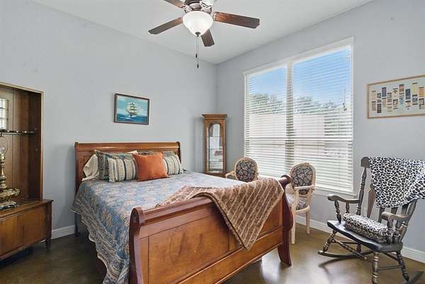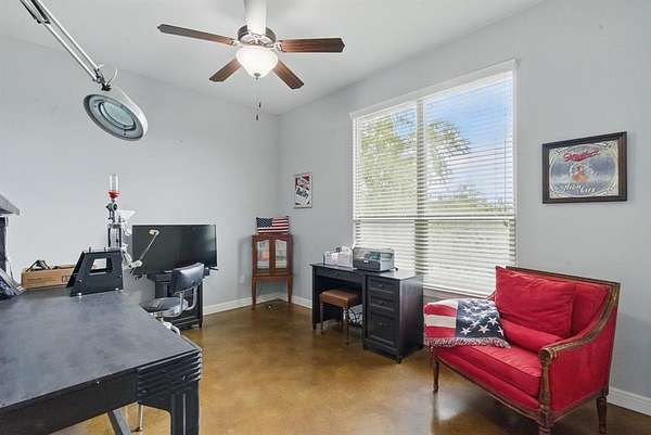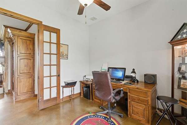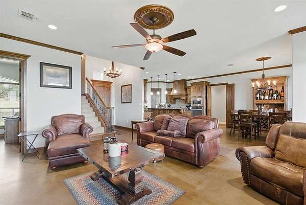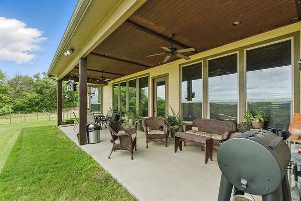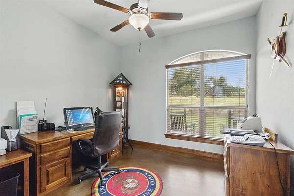 Welcome to your dream home located in the heart of Mountain Lakes Ranch development, Bluff Dale Texas. This stunning 4-bedroom, 3-bath custom-built home with a dedicated office blends thoughtful design, comfort, and functionality--offering everything you need for modern country living. Step inside and be greeted by 10' ceilings and durable concrete floors that flow throughout the main level. The expansive wall of windows in the living area captures breathtaking hill country views and fills the open-concept space with natural light. The gorgeous knotty alder cabinetry, granite countertops, center island with breakfast bar seating and walk-in pantry make the kitchen a true centerpiece for gathering and entertaining. The spacious primary suite is located on the first floor and features sweeping views, a luxurious ensuite with garden tub, walk-in shower with seat, dual vanities, and ample closet space. Two additional bedrooms are also on the main level, while the fourth bedroom upstairs includes dual closets and a private full bath--perfect for guests or multi-generational living. Function meets convenience in the large utility room, with lots of storage and a custom tiled pet shower. Outside, enjoy the peace and possibilities of country life. The property includes a 30x40 insulated shop with windows, two walk-through doors, and a 10' roll-up--ideal for projects, hobbies, or extra storage. A 3-sided barn offers shelter for your animals, and with goats, a donkey, and a horse already calling it home, it's perfectly suited for hobby farming or simply enjoying the ranch lifestyle. Don't miss the opportunity to own this exceptional home that offers space, scenery, and endless potential in the picturesque community of Bluff Dale.