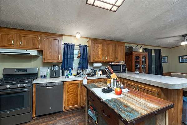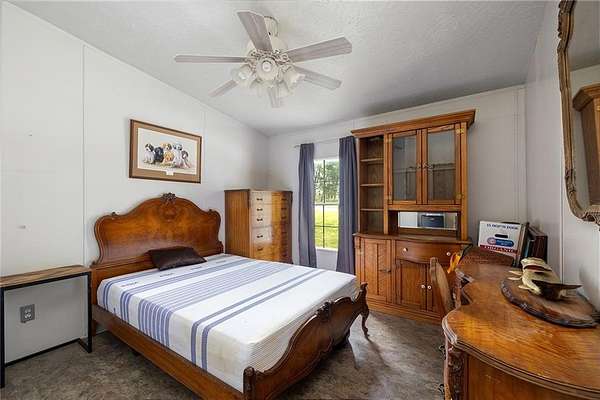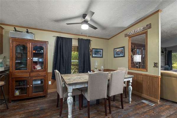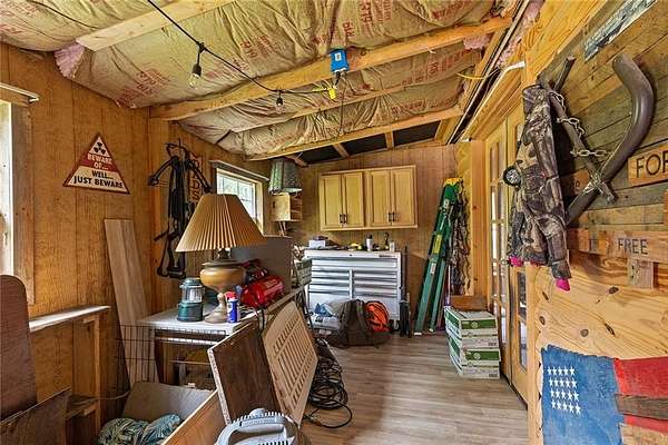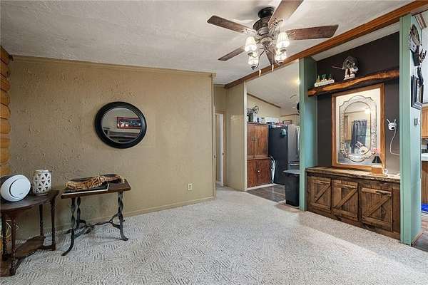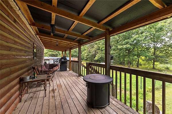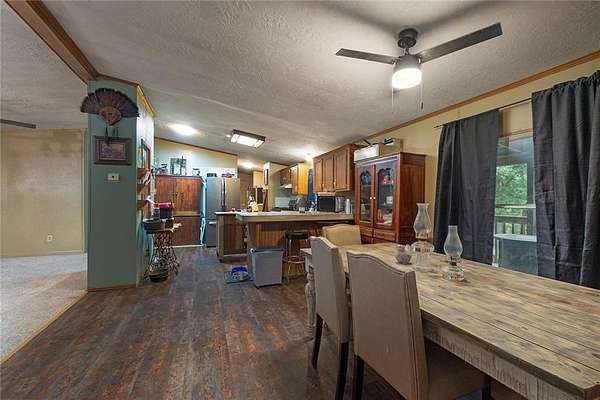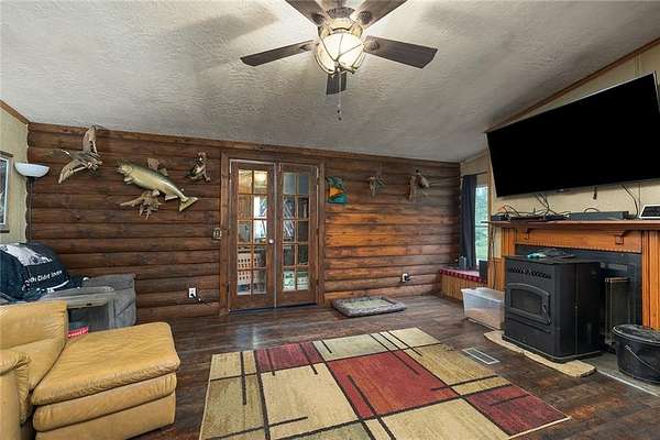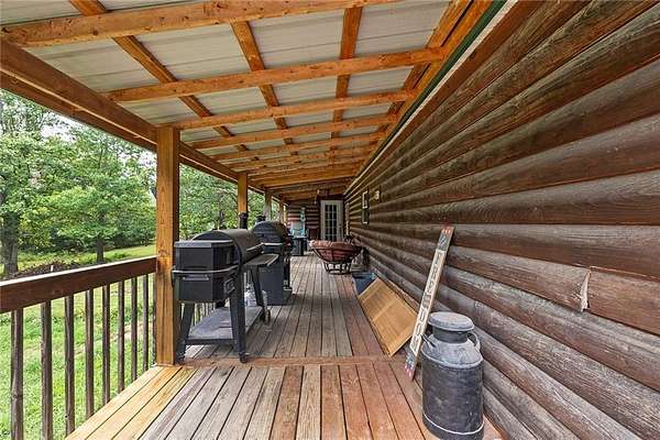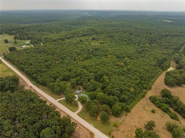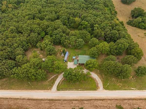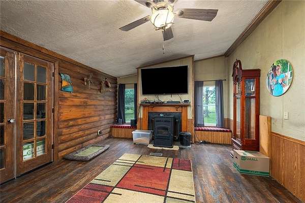 Welcome to your own private retreat on 20 beautiful acres! This log-sided manufactured home is nestled among rolling hills and mature timber. The land is mostly wooded, with a seasonal creek that runs at the bottom of the first hill - flowing during heavy rains. The property is partially fenced with barb wire along the sides and back. Step inside to find 3 spacious bedrooms and 2 full bathrooms. A formal living room greets you at the front of the home, leading into an open-concept kitchen and cozy family room. Home has newer vinyl plank tile. The pellet stove adds warmth and charm while helping reduce propane costs during the colder months. There is a central all-in-one electric heating and cooling system as well.. The home also features a durable metal roof for long-term peace of mind. Enjoy the outdoors from the large back deck, part of which is enclosed and currently used as a small workshop. Additional features include a 30-amp RV hookup, a second septic system near the campsite area, and a blue connex container with its own 200-amp electrical service-perfect for storage or future expansion. Whether you're looking for a full-time residence, weekend getaway, or hunting basecamp, this property has endless potential. This property qualifies for free deer tags every year.