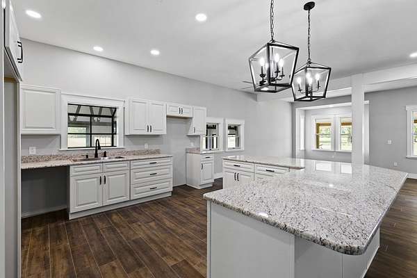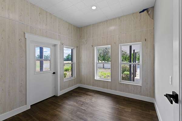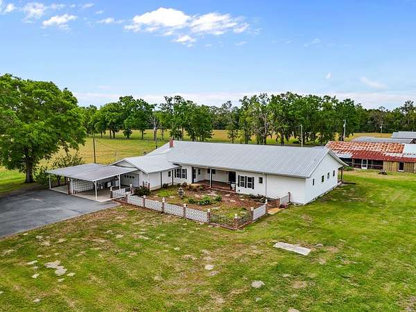 Welcome to this beautifully renovated 3-bedroom, 2-bathroom farmhouse, nestled on 5 acres of serene countryside in Trenton, Florida. This home has been thoughtfully updated with modern touches while preserving its rustic charm, offering a perfect blend of comfort and character. Step onto the expansive covered porch, ideal for enjoying your morning coffee or evening sunsets, and enter into a bright, open living space. The home boasts oversized bedrooms, including a spacious primary suite with an attached private bathroom. The kitchen features brand-new cabinets, sleek granite countertops, and stylish light fixtures, making it a chef's dream. A walk-in butler pantry provides ample storage, and the large laundry room and mudroom add convenience to daily life. For those who work from home, the dedicated office space provides a quiet retreat. The property also includes a barn and a chicken coop, perfect for those looking to embrace a rural lifestyle. Surrounded by lush hayfields and offering complete privacy, this home is ideal for anyone seeking peaceful, country living. Located in a great area with A+ schools, this home offers the perfect balance of tranquility and accessibility. Don't miss your chance to own this stunning property and experience the best of country living!